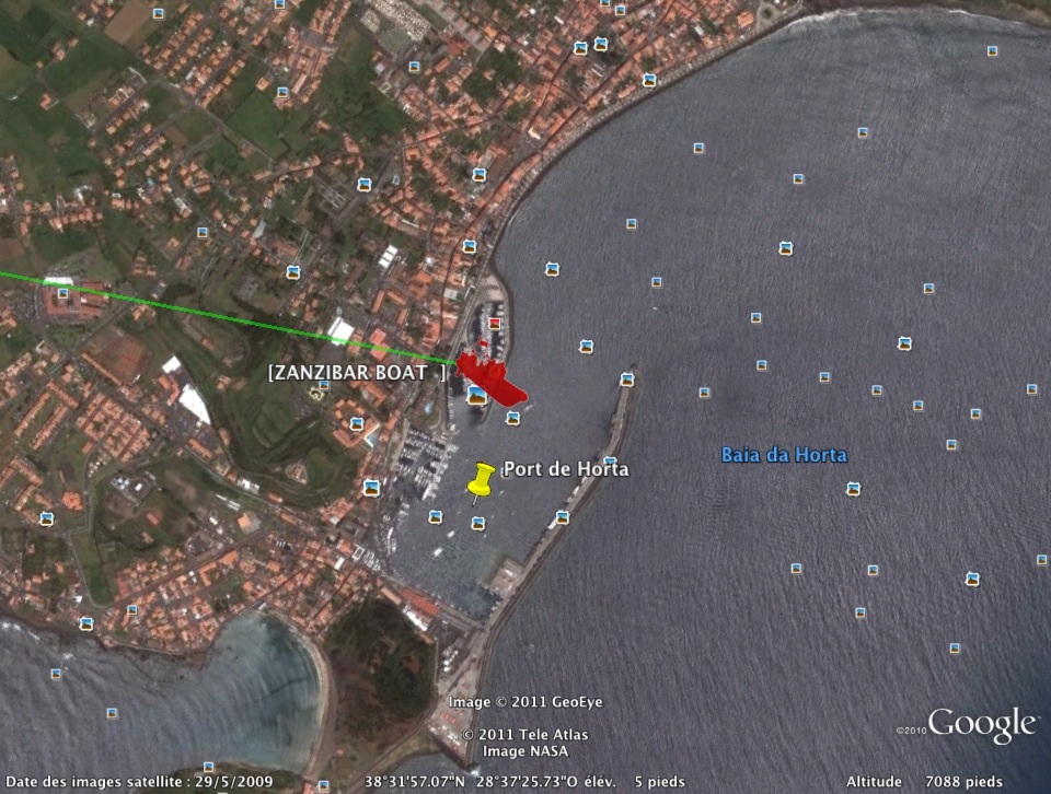 Zanzibar est arrivé aux Açores ! L’équipage a retrouvé la terre ferme, le bar de Peter et un bon steack… Et une vraie nuit sans quart. Et une vraie douche chaude. Et internet. Et donc skype. Et donc nous ! C’est quand même plus sympa que la balise…