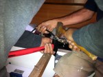 La nouvelle poutre Sparcraft est présentée, essayée, ajustée, puis fixée définitivement.