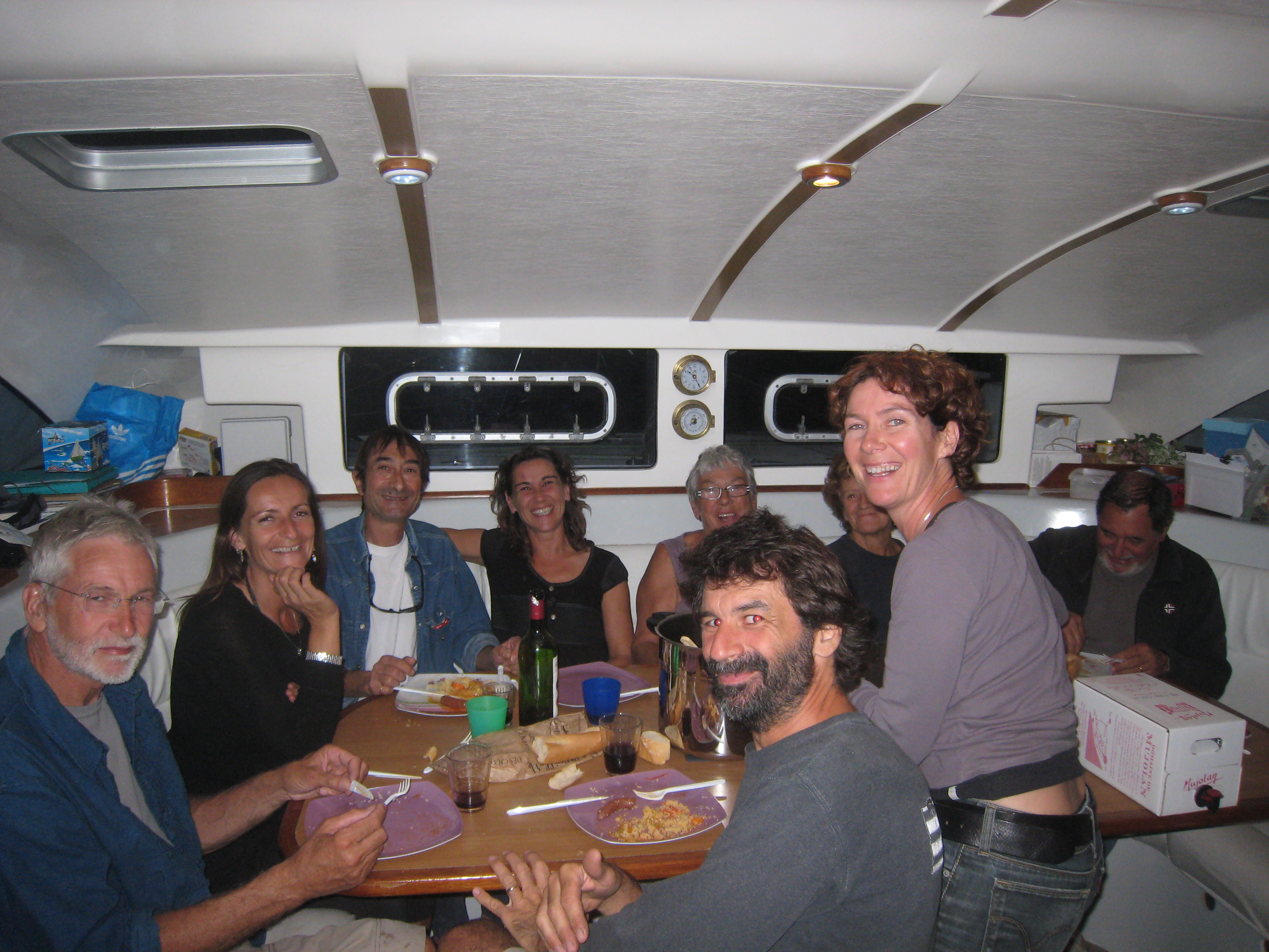 Nous « démaraboutons » à l’arrache Zanzibar contre la présence de lapinous à bord : le tour du bateau à cloche-pied, une bière à la main et un lapin crétin dans la poche. Ca devrait le faire. De toute façon Kiki nous a bien expliqué que ce sont les bateaux de l’Atlantique qui croient à ces sornettes, et que la superstition s’est généralisée quand le roi Louis quelque chose à rassemblé la marine de Méditerranée et la Marine Atlantique en créant la Marine Royale. Les bateaux de Méditerranée, eux, ne craignent en vérité que les oeufs durs et les chaussures de ville ! Nous voilà donc complètement rassurés. (j’ai quand même laissé les escarpins à terre… on ne sait jamais!).