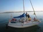 Nous larguons les amarres à 9 heures et des grosses poussières. Alain embarque le comité officiel de soutien (presque au complet) sur le Nausicca, pour nous accompagner jusqu’aux ponts. Notre ancien « petit » bateau à côté de Zanzibar… Cette traversée de l’étang en patrouille est tellement chouette. Mais le premier pont nous sépare à 10h10 et nous laissons devant la Pointe Courte la famille et les copains. Nous partons voguer, seuls, vers de nouvelles aventures. Ca fait bizarre bizarre…
