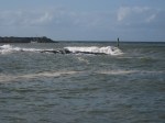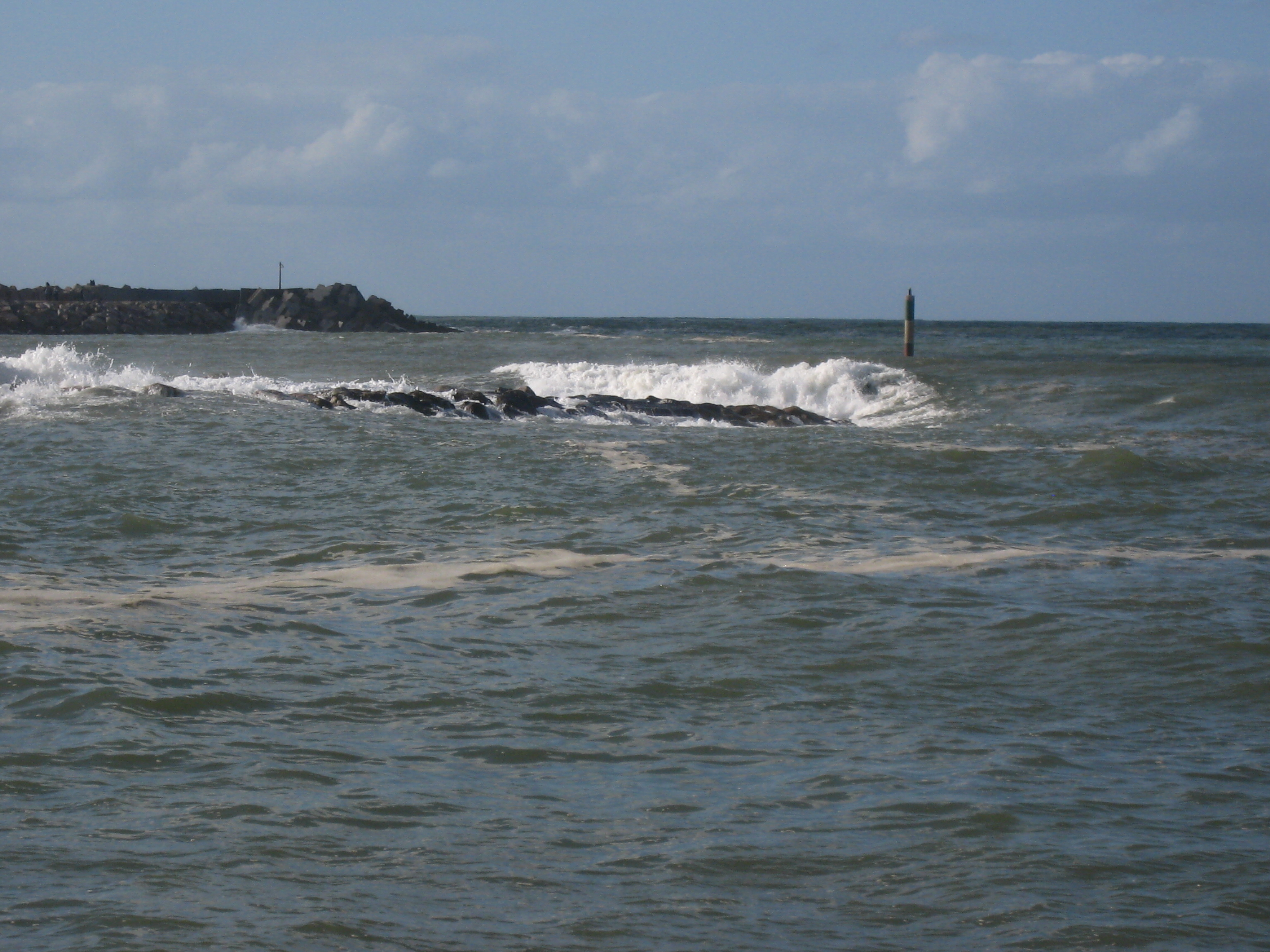 Dès que la marée est haute, les premiers bateaux quittent le ponton de la capitainerie.  A distance, les mouvements d’oscillation de leurs mâts sont impressionnants et laissent présager de grosses grosses vagues dans le passage étroit des digues… Nous retrouvons les pilotes de la marina au pied des murailles de la casbah et attendons la bonne séquence de vagues pour passer à notre tour. A leur signal nous nous élançons, sans une certaine émotion.  C’est la foire du Trône !