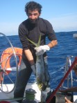 Le vent est toujours de sud, donc toujours de face…  donc toujours le doux ronron du moteur… La mer est un peu plus tranquille et les enfants arrivent à peu près à travailler. Mais difficile de les motiver, ils ne pensent qu’à pêcher et jouer aux légos. La prise d’une magnifique dorade coryphène satisfait quelque temps leur instinct de chasseur mais relance illico les discussions techniques sur les leurres (qu’ils fabriquent maintenant eux même avec des morceaux de cordages), les lignes, les façons d’achever ces pauv’ bêtes… et tutti quanti. Même Juliette a attrapé le virus.
