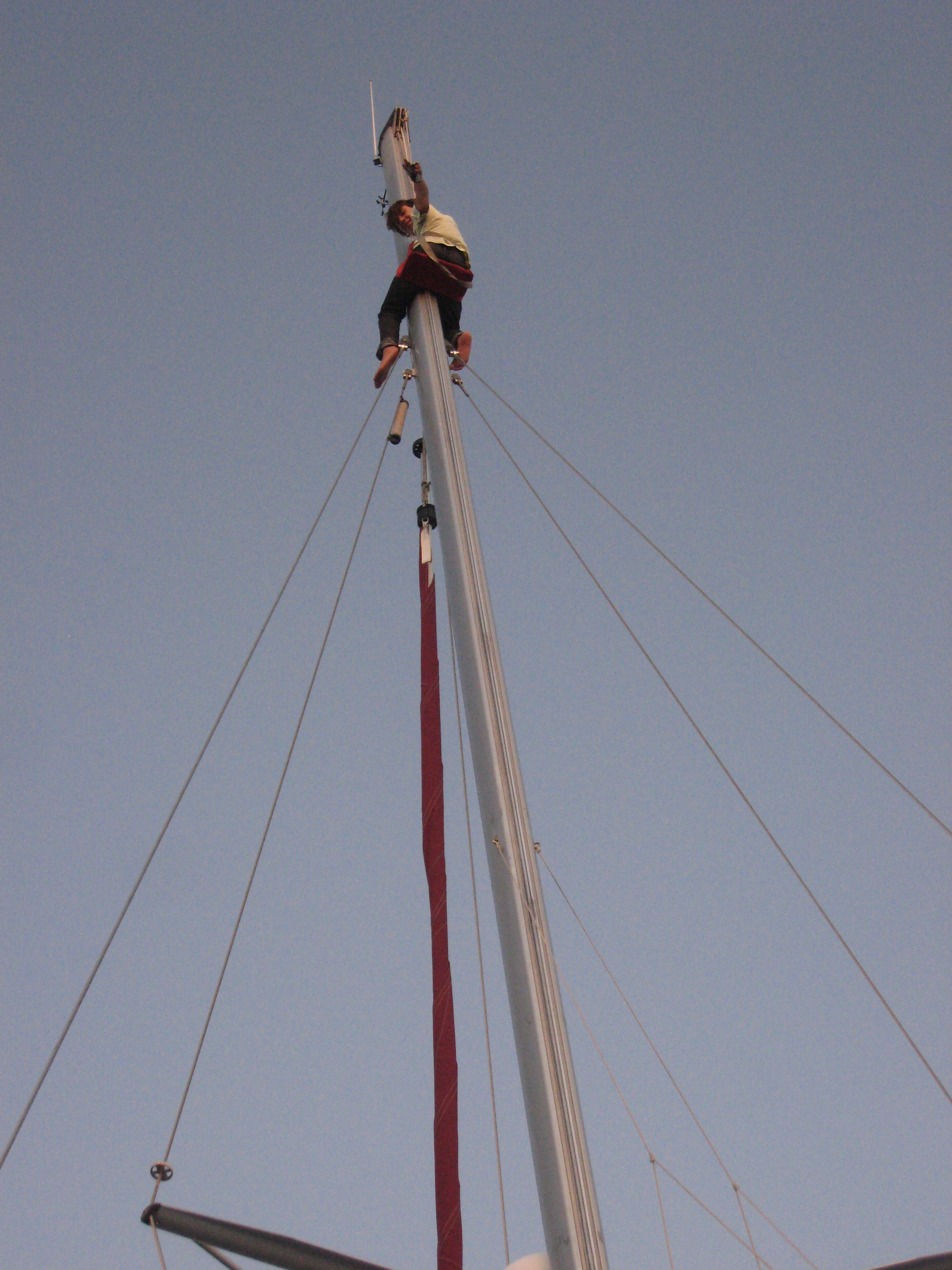 Tout le monde est impatient de mettre les voiles sur le Cap Vert. Les premiers départs sont prévus pour demain dimanche. Nous hésitons encore. Manu change le tableau électrique et soude tout l’après-midi en espérant que ce fichu pilote fonctionnera enfin correctement. Nous voulons pouvoir lui faire confiance avant de partir pour 800 milles.  C’est rigolo de barrer, mais 5 à 6 jours d’affilée, 24h/24, à deux, c’est bof bof…