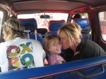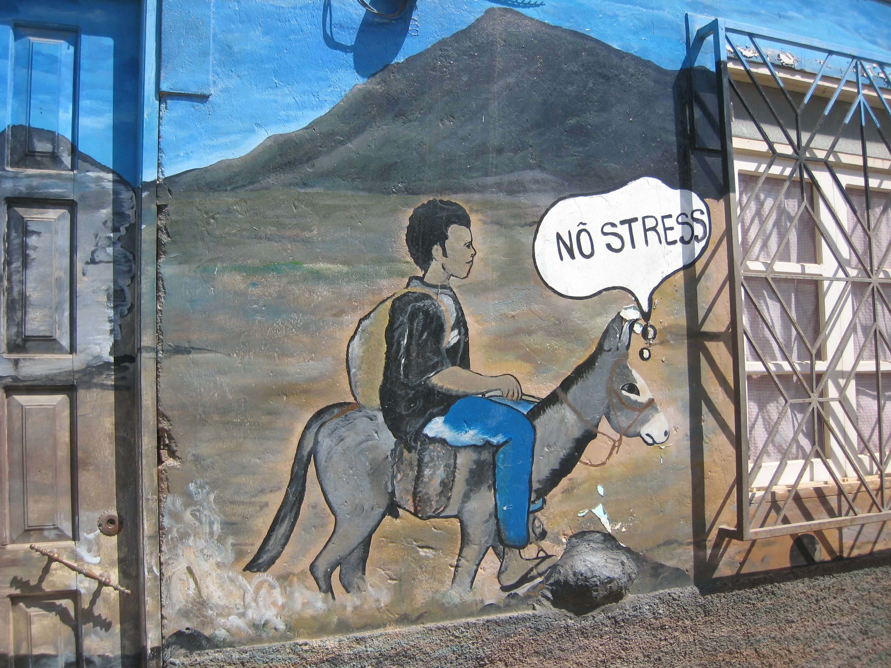 Nous empruntons les « aluguer » quand nous voulons rejoindre Espargos, la capitale de l’île, à quelques kilomètres : ces mini-vans, moumoute sur le tableau de bord et fenêtres ouvertes déversant un flot continu de musiques plus ou moins écoutables, s’arrêtent en klaxonnant tous les 20 mètres pour essayer de remplir leur bonne douzaine de sièges. Tarif unique (50 cents) et destination en fonction des passagers, nous nous en remettons chaque fois à notre bonne étoile pour s’être fait comprendre et arriver à bon port, en un temps absolument immaitrisable ! Mais nous avons tout le temps. Tranquille.