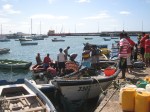 Le week-end, des enfants envahissent le quai des pêcheurs et se jettent sur toutes les annexes qui s’approchent pour aider à les amarrer et à débarquer.  L’accès se résumant à un bout de quai d’environ 4 mètres où doivent s’entasser les dinghys de dizaines de bateau au mouillage, le coup de main est souvent bien utile. Mais on aurait préféré avoir un stock de bonbons à distribuer plutôt que des escudos…  Nous y faisons la connaissance d’un sympathique petit bonhomme d’une dizaine d’années, une bouille à croquer, tout en sourire, éclats de rire, morve au nez et yeux infectés. Paul nous apprend qu’il n’a pas de parents ici (on ne sait pas ce que cela signifie exactement) et que les habitants s’en occupent plus ou moins, une fois par ci, une fois par là. Il est même proposé à Modus Vivendi de l’embarquer !! Comme nous ne le voyons pas le lundi, nous en déduisons qu’il va quand même à l’école.