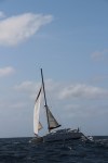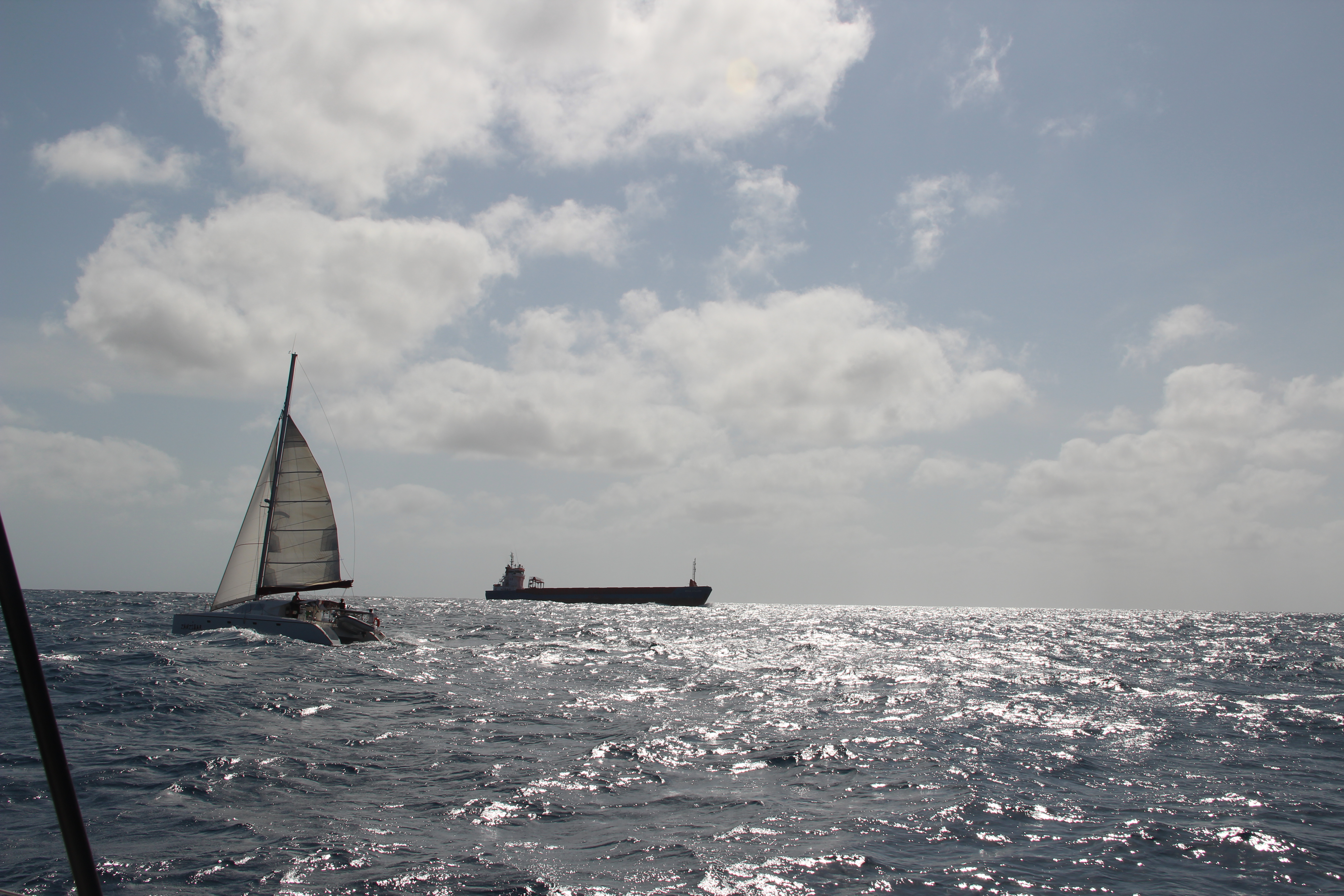 25 nœuds de vent plein travers nous propulsent sur les flots en direction de notre prochaine escale cap verdienne. Zanzibar fait du 8-9 nœuds avec 2 ris dans la grand voile. Le vent forcit encore un peu et quand nous nous posons la question de rouler peut être un brin de génois, Juliette proteste avec véhémence : on se traine depuis le départ, il est hors de question de réduite la voilure maintenant (sic !). Nous faisons de très jolies pointes à plus de 11 nœuds et, à ce rythme, arrivons rapidement à Boa Vista (j’aurais bien eu le temps d’aller à l’école de Palmeira !).