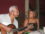 Mais Jack et Zizi viennent nous sauver de notre dépression et donner à cette escale beaucoup de la chaleur cap verdienne. Jack nous enlève pour un petit tour de l’île (tellement belle !) avant d’aller diner dans leur jolie maison, un peu en dehors du brouhaha de la ville. Les enfants sont heureux d’avoir soudain autant d’espace pour courir et jouer : ils font de bruyantes parties de ballon avec Luis. Jack nous a préparé un traditionnel midje em grao et nous nous en régalons en pensant très fort à Tatu et Isa !! Quel délice. La soirée est merveilleuse. Zizi chante la morna et le temps suspend son vol. Pourquoi faut-il déjà partir pour les Caraïbes ? Pourquoi ne pas fêter Noël ici ?? On a envie de poser nos valises. Zizi nous offre son disque, nous pourrons encore rêver à bord en repensant à toutes ces belles étapes cap verdiennes.