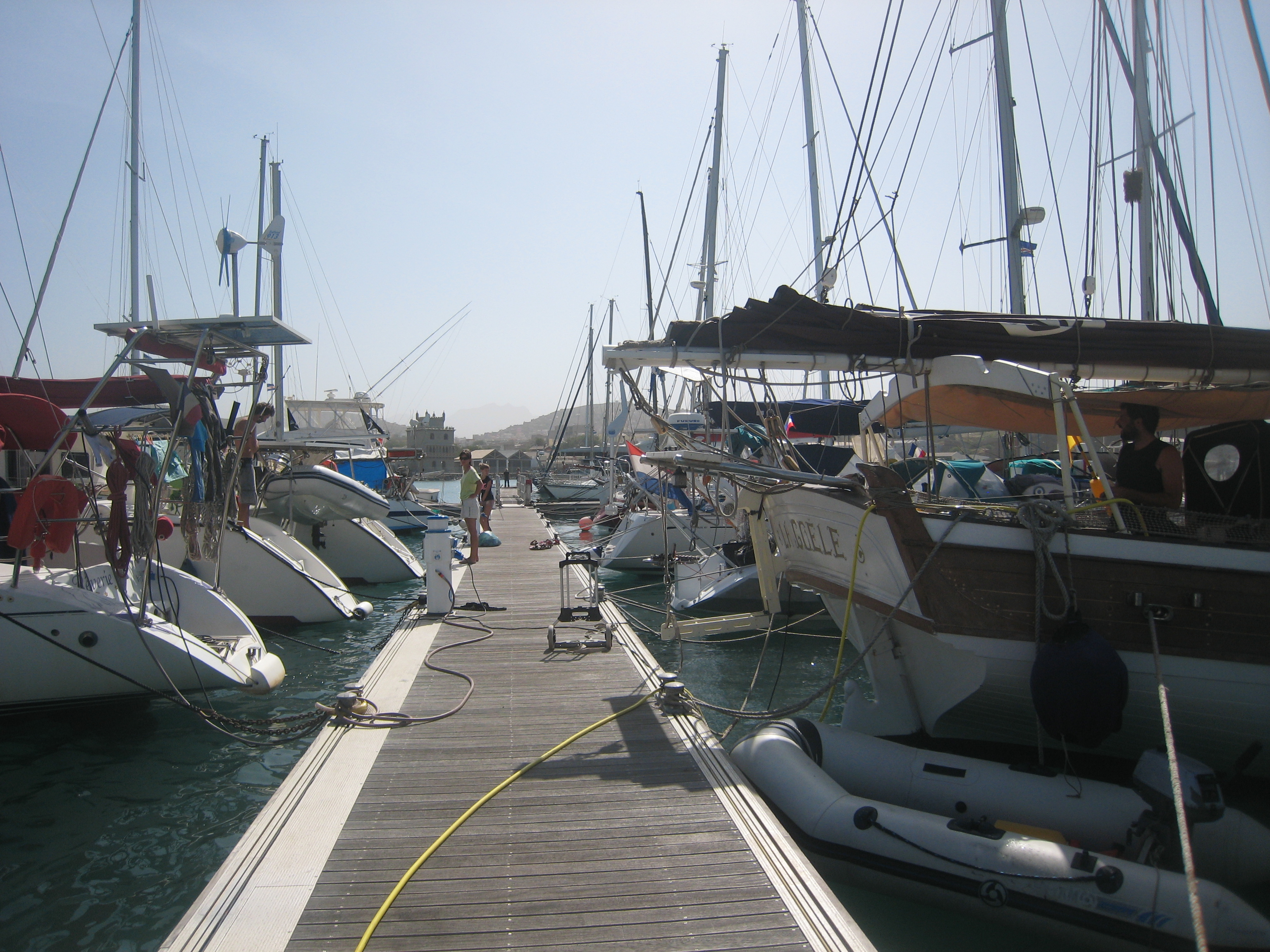Le beau temps revient peu à peu et les préparatifs avancent tranquillement (installation du nouveau pilote et paramètrages, vidanges des moteurs, changement des filtres et tout le bazar qui va avec, protection des haubans, vérification du gréement, passage d’une drisse supplémentaire dans le mât … et 23 évaluations à gérer…). Faute de temps, nous prenons la sage (mais douloureuse) décision d’annuler l’excursion sur Santo Antao, la plus belle île de tout le Cap Vert (c’est dire si c’est dommage !). Théophile (petit filou !) arrive quand même à s’y échapper avec les équipages du Bubu et de Losadamo. Nous repoussons aussi notre départ de 24 heures, histoire de ne pas reprendre la mer dans le speed.