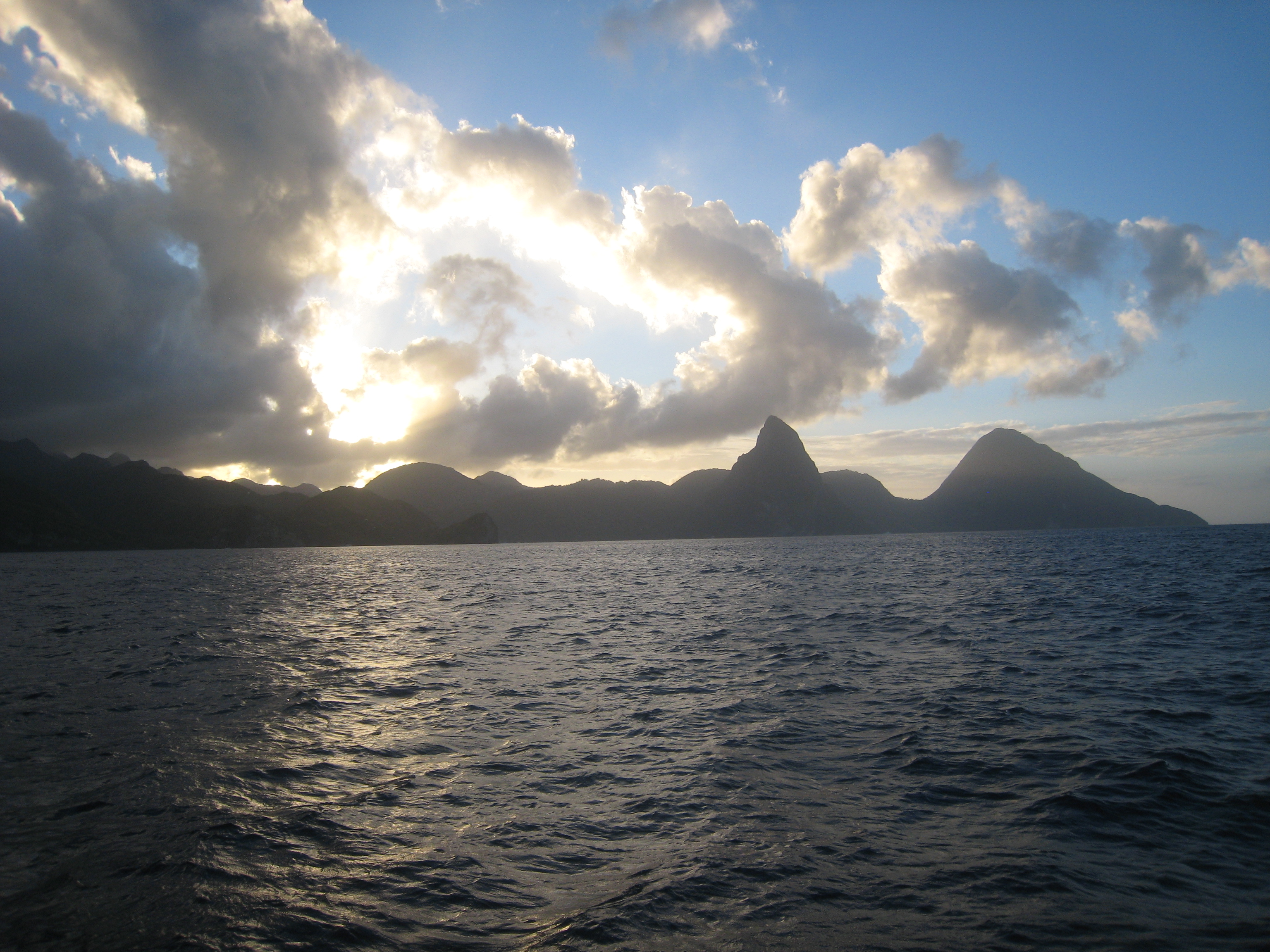 Cruel dilemme entre se faire secouer sur 87 milles ou ne pas faire la fiesta avec les copains… Comme chaque fois que nous nous posons trop de questions, nous envoyons un message à Alain (Bleu 2 M) qui nous rassure sur la fiabilité des fichiers météo dans le coin. Nous sommes dans les Christmas Winds, les vents un peu instables qui précèdent les alizés qui s’établissent en janvier. Il faut cependant rester prudents dans les passages entre les îles où les vents peuvent se renforcer violemment (nous l’avions déjà expérimenté entre Sao Nicolao et San Vincente, au Cap Vert). Forts de ces conseils, nous décidons de quitter Ste Lucie au petit matin.