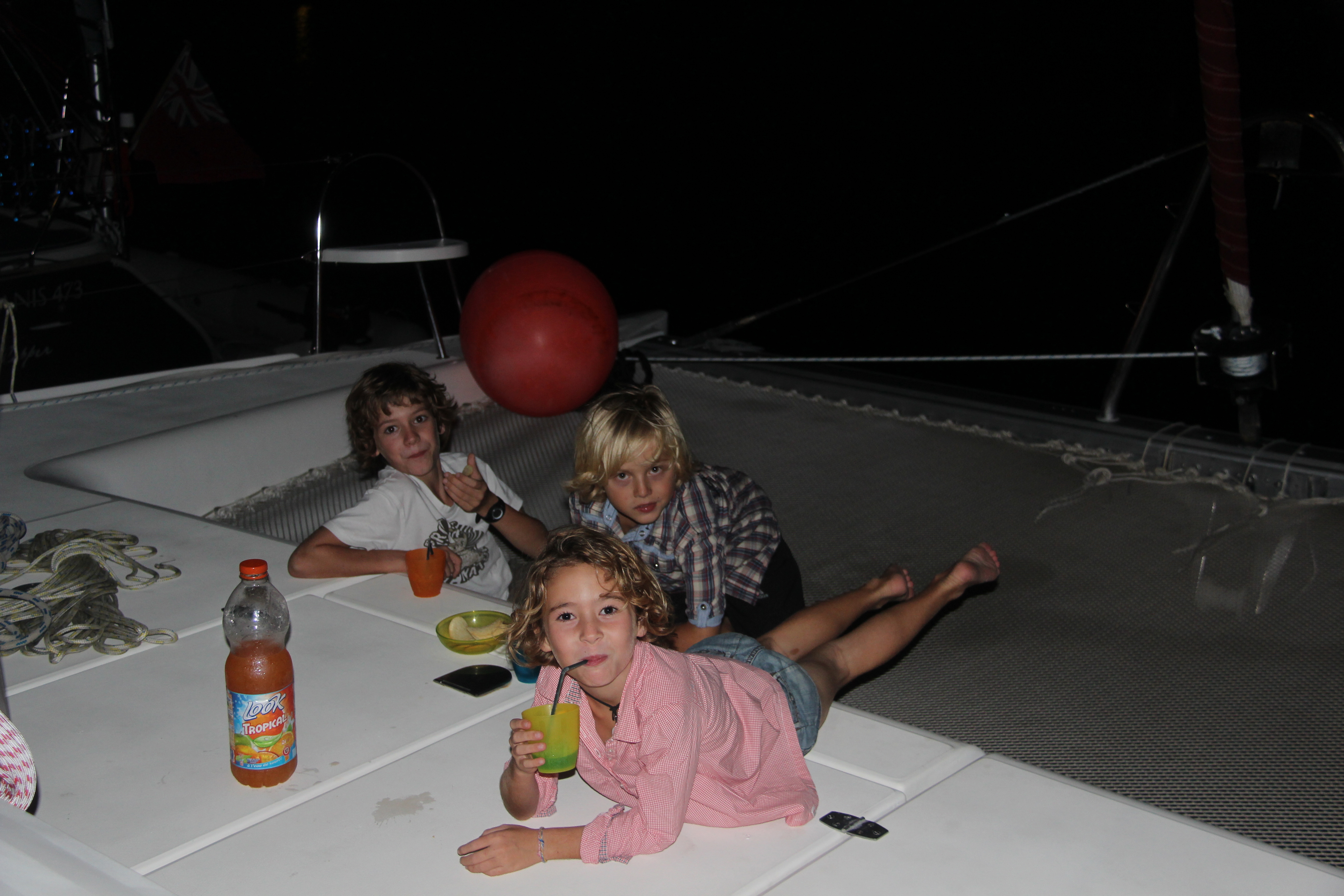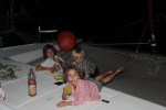 Nous partons en expédition à bord des annexes pour aller fêter les 8 ans de notre Juliette, sur la plage de Rodney, sous les palmiers… Un peu difficile pour les bougies que le vent souffle, mais le gateau (made in le bubu !) est excellent. Et la baignade aussi…