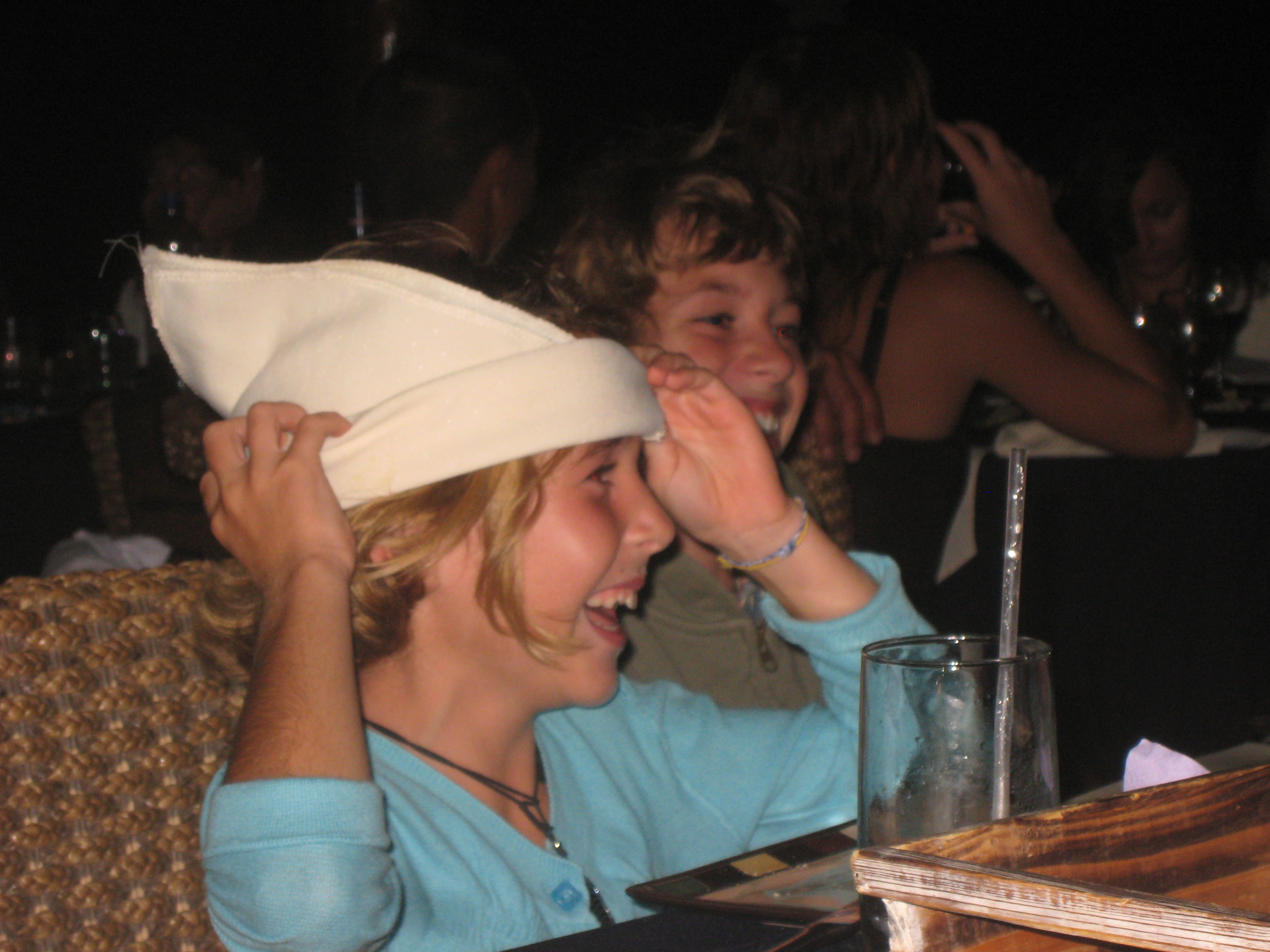 Les bateaux-copains sont tous là (ou presque : ne manquent que Cajou et tous ceux qui naviguent un peu trop loin des Grenadines). Impossible cependant d’organiser notre soirée du Nouvel An sur la plage : définitivement trop de vent. Nous envahissons donc le très joli restaurant italien de la baie, tout ouvert sur la mer, terrasses au bord de l’eau. Il y a même une piscine (que nos nombreux enfants ensablent allègrement à force d’aller-retour entre le bassin et leurs châteaux de sable… pauvres gosses).