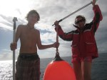 Nous quittons  Chatham Bay le 02 janvier pour le village de Clifton, sur la côte au vent de l’île. Alors que nous naviguons au moteur et sous les grains, un coup de vent vient nous enlever Joséphine, l’énorme et magnifique bouée orange qui sert de poney aux enfants (voire même de punching ball…). Impossible d’abandonner ce fidèle compagnon : nous improvisons une manoeuvre de récupération d’homme à la mer et la sauvons avec fierté d’un pitoyable naufrage. Nous pouvons bravement reprendre notre route.