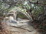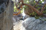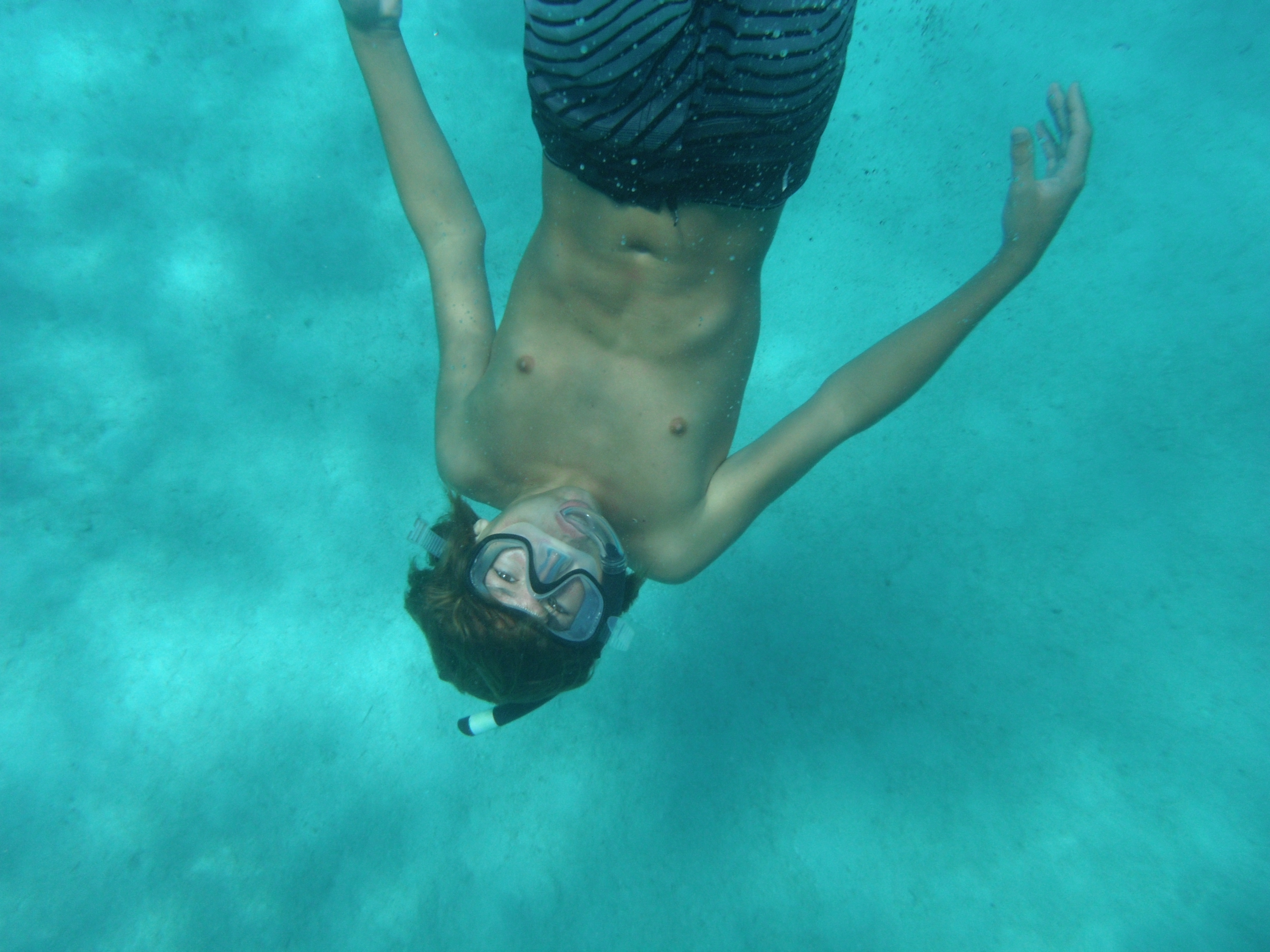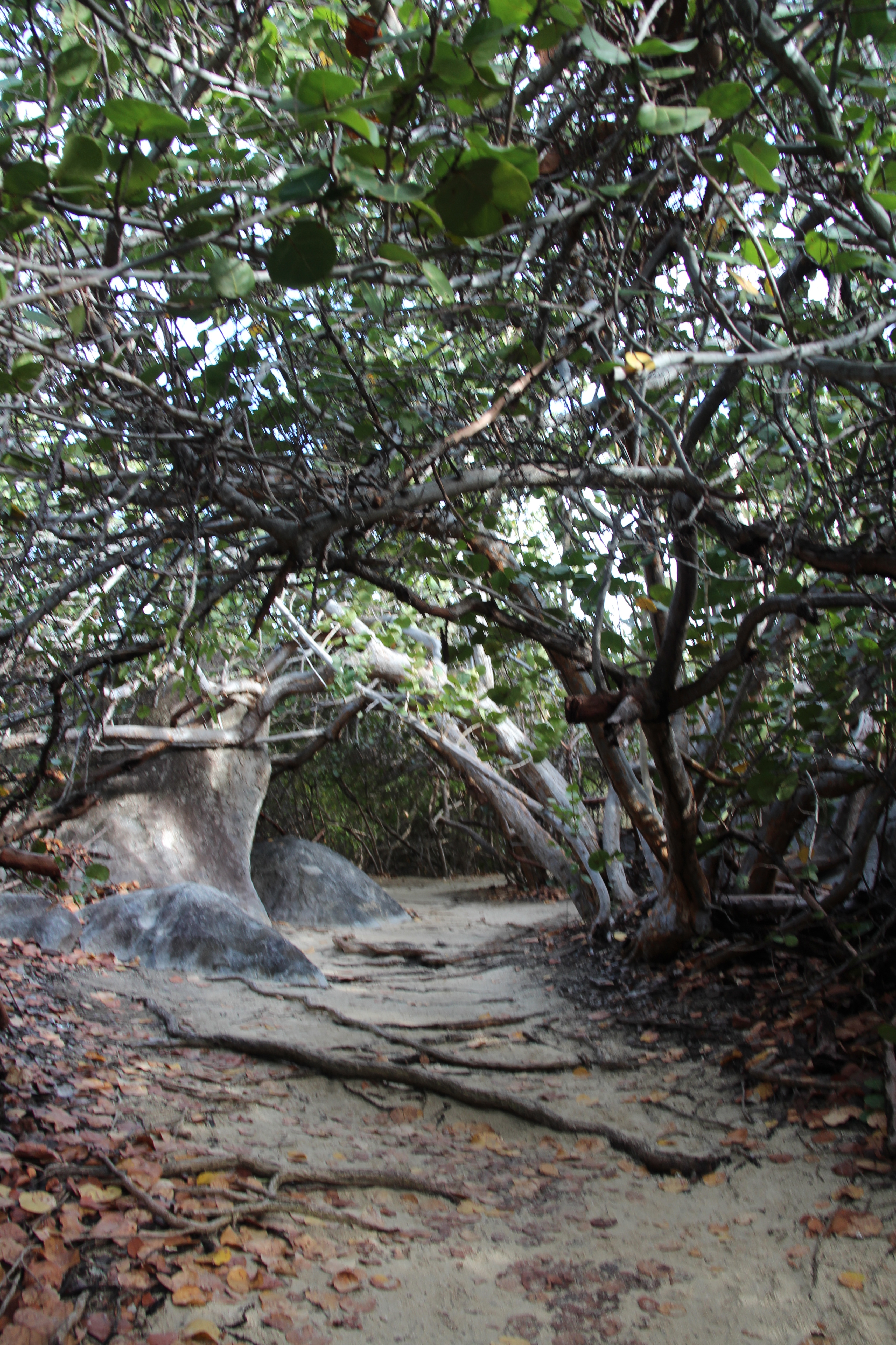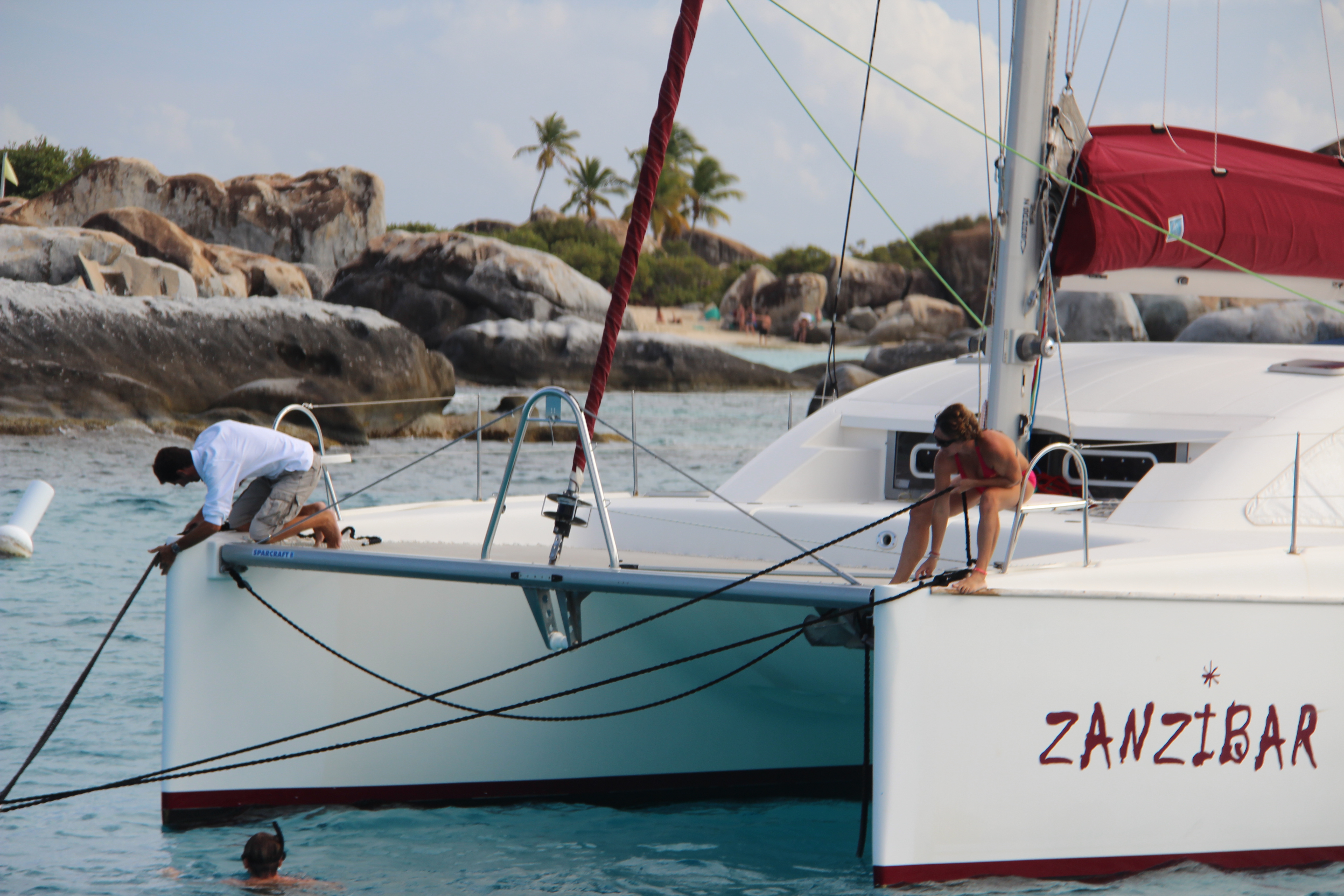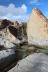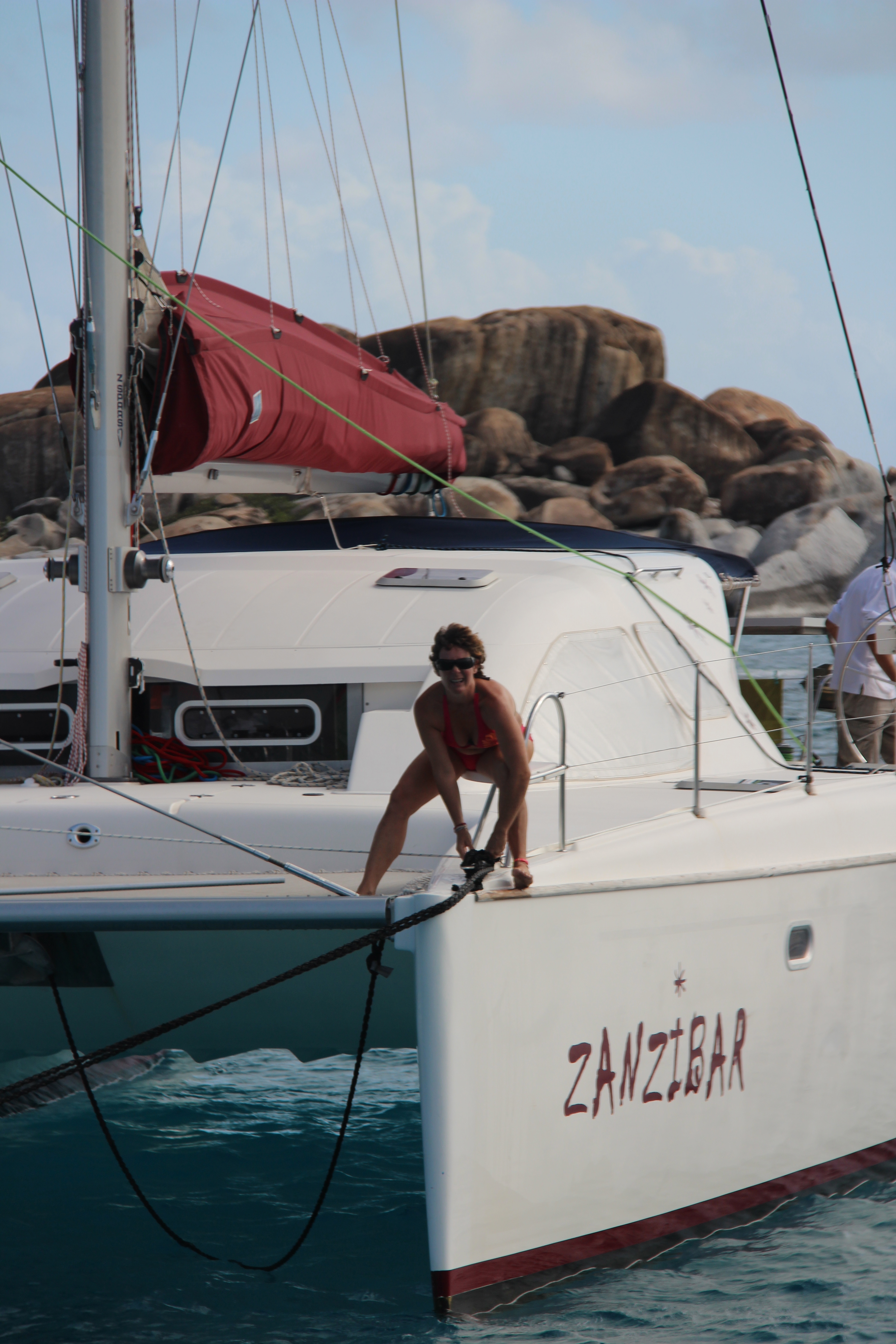Nous retrouvons l’équipage du Bubu, parti quelques jours avant nous de St Martin. Réserve naturelle oblige, le mouillage est interdit dans la zone et nous prenons une bouée devant les mythiques Baths, sous un beau grain (comme d’hab !) et à l’arrache (c’est un peu la loi de la jungle : il faut être drôlement réactif pour ne pas se faire piquer la bouée sous l’étrave…). Les Baths sont un labyrinthe de baignoires naturelles en partie envahies par la mer, formées dans un amoncellement de blocs de granit d’origine volcanique, disséminés le long de la plage. Le spectacle est tout à fait étonnant : des petites piscines aux eaux cristallines se cachent entre les rochers ou dans les grottes creusées par le vent, les marées ou les tempêtes. Les dinghy n’étant pas autorisés à accoster, on nage jusqu’à la plage puis on chemine lentement dans le dédale de roche jusqu’à Devil’s Bay. Jolie promenade aquatico-pédestre. Les enfants se régalent de ces rochers à escalader, des grandes flaques d’eau claire où se trempouiller, des nombreuses cachettes où jouer aux pirates.