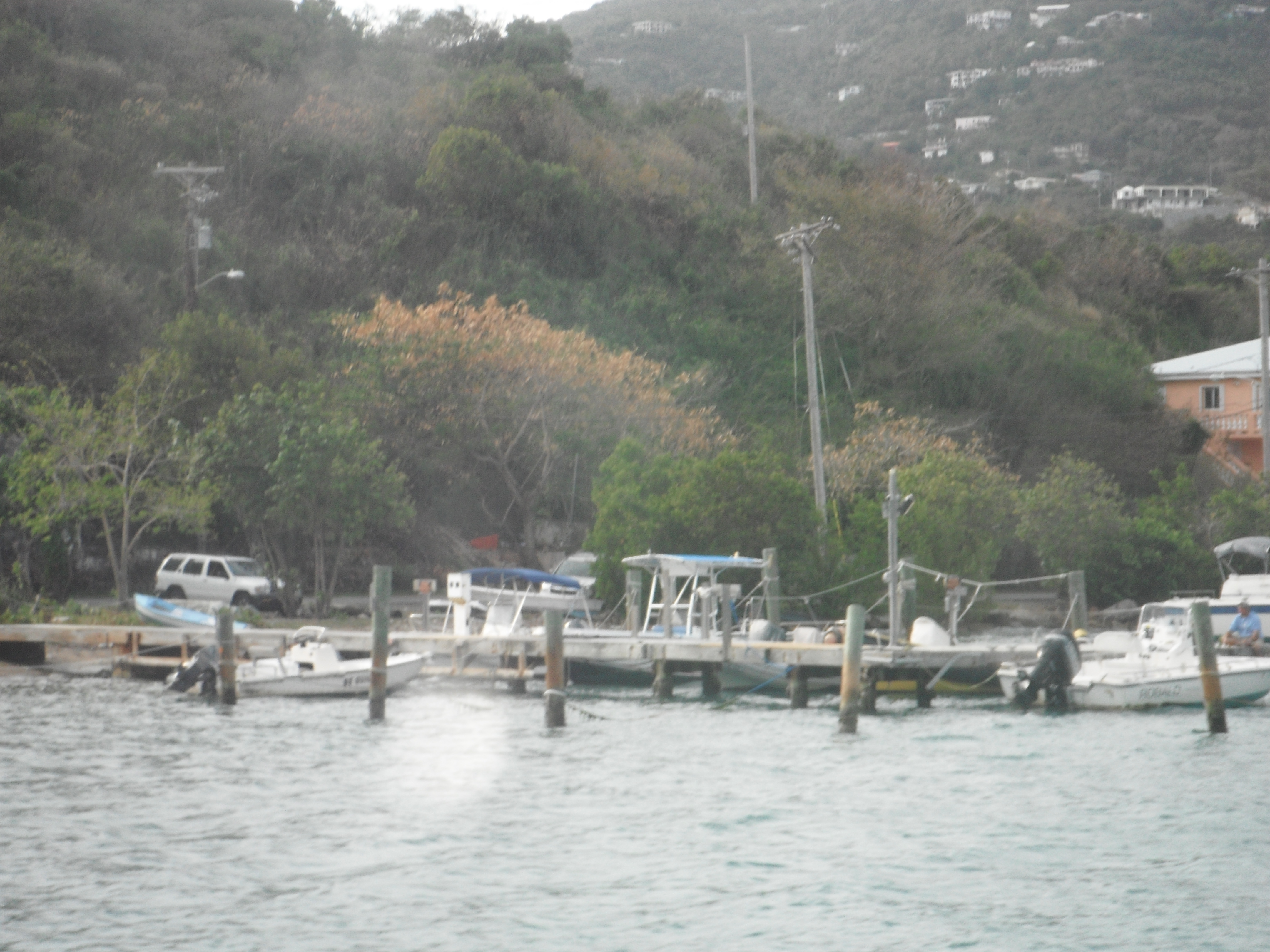 Nous trainons pendant 3 heures à chercher désespérément une bouée à Road Harbour, que nous pensons être le seul point de départ des ferrys. On finit par échouer dans la pauvre marina très moche de Village Cay… à 100 usd la nuit ! (sans l’eau ni l’électricité…). Au secours ! Après une très rapide enquête, nous déménageons finalement de quai : le ponton juste à côté appartient à une autre marina, qui nous propose 35 usd de moins, pour la même absence de prestations et toujours la même mocheté. Nous n’en sommes plus à une manœuvre près ! Dommage qu’il n’y ait pas encore une autre marina un peu plus loin, on commençait à être bien échauffés… En plus il continue de pleuvoir sans discontinuer. C’est tout à fait charmant.
