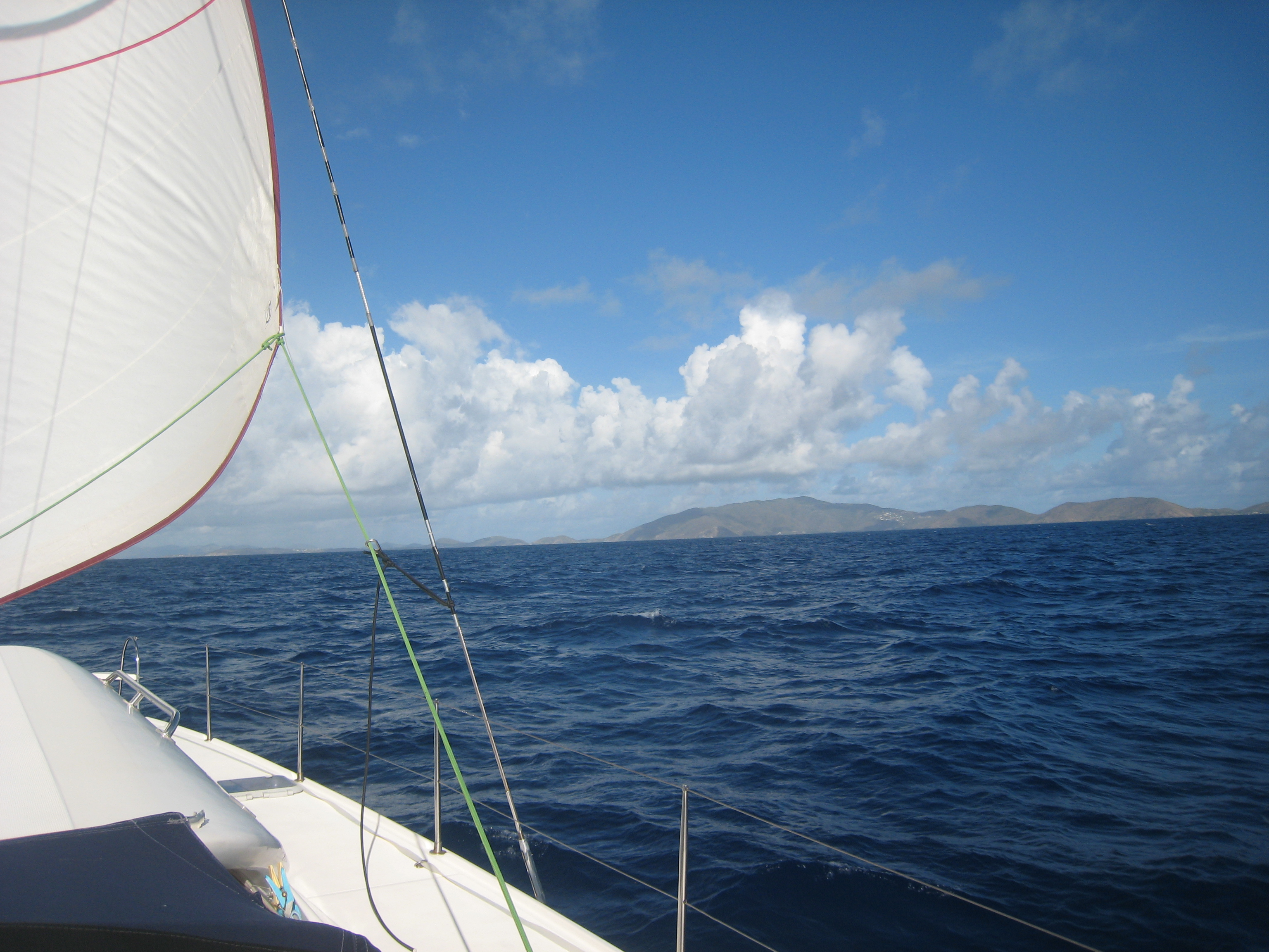 Nous partons sur une jolie nav de nuit pour rejoindre les Iles Vierges Britanniques, à 80 nautiques de St Martin. Cet archipel marque la limite Nord Ouest des Petites Antilles mais est beaucoup plus proche culturellement de Porto Rico et des Etats-Unis. A l’origine peuplées par quelques tribus d’Amérindiens, ces îles furent « découvertes » et baptisées par Christophe Colomb. Elles furent pourtant délaissées par les Espagnols, qui leur préféraient les territoires riches du continent Sud Américain. Mais sur la route du retour vers l’Espagne, les gallions chargés de richesses devaient frôler ces Iles Vierges pour trouver les vents portants : elles devinrent ainsi un véritable repaire de pirates, pour la plupart anglais, hollandais et français. L’histoire des îles est empreinte des hauts faits et des légendes de flibustiers devenus tristement célèbres.