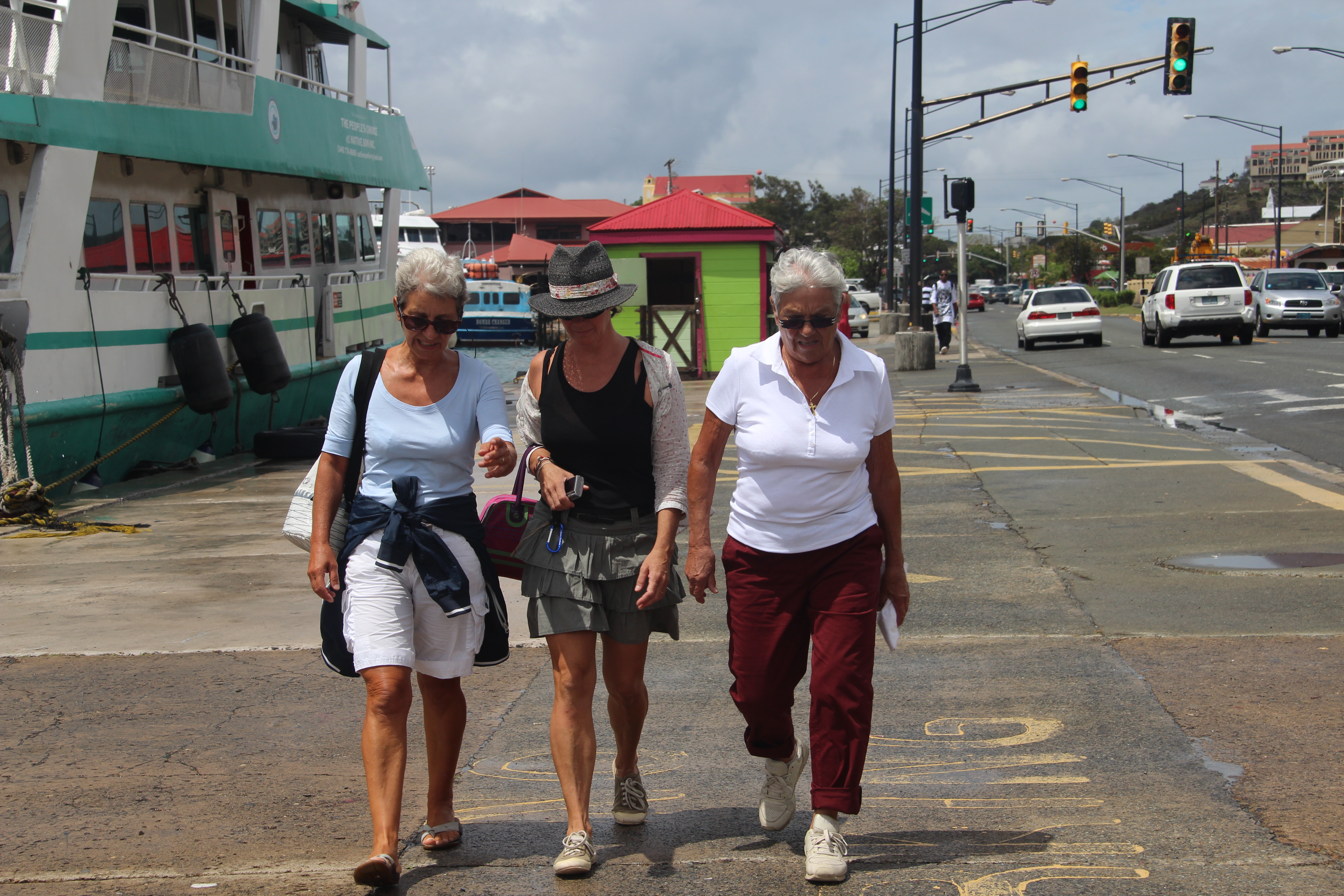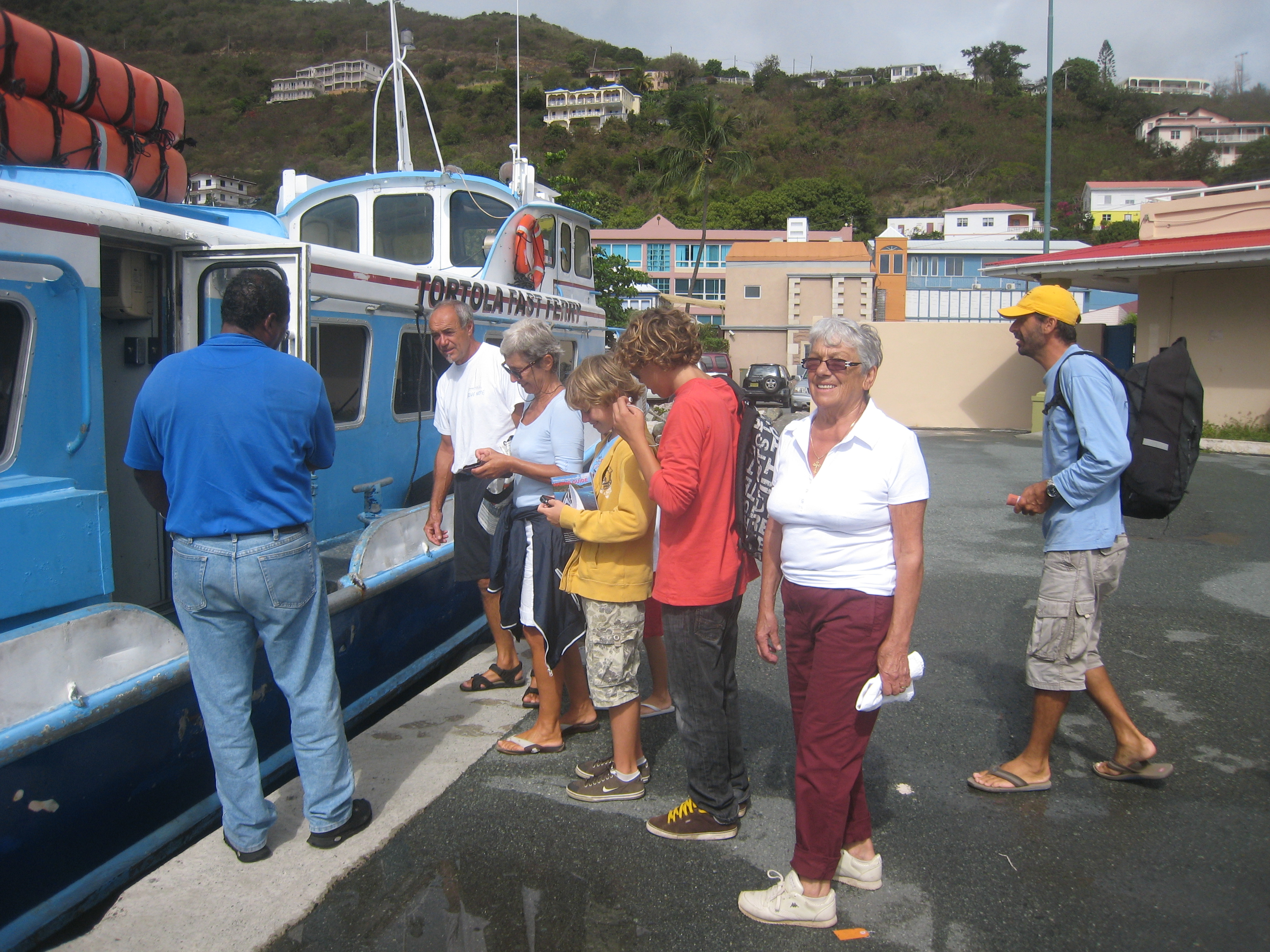 Petites explications : il est interdit d’entrer sur le territoire des Etats-Unis avec sa propre embarcation (ou son propre avion) si une demande de visa spécial n’a pas été faite auparavant. Avec notre grand sens de l’organisation et de l’anticipation, il est évident que la demande de visa est restée à l’état de projet : c’était trop loin, trop compliqué, et on avait d’autres chats à fouetter (ou de bateau à réparer, plutôt, le chat ne nous ayant rien fait… ). Mais comme nous ne sommes pas les seuls mauvais élèves à naviguer, les idées lumineuses circulent rapidement : LA solution est de prendre un ferry depuis les Iles Vierges Britanniques pour arriver à St Thomas, aux Iles Vierges Américaines, comme n’importe quel touriste, à bord d’un navire commercial. Petit coup de tampon sur le passeport, et hop ! Fastoche !