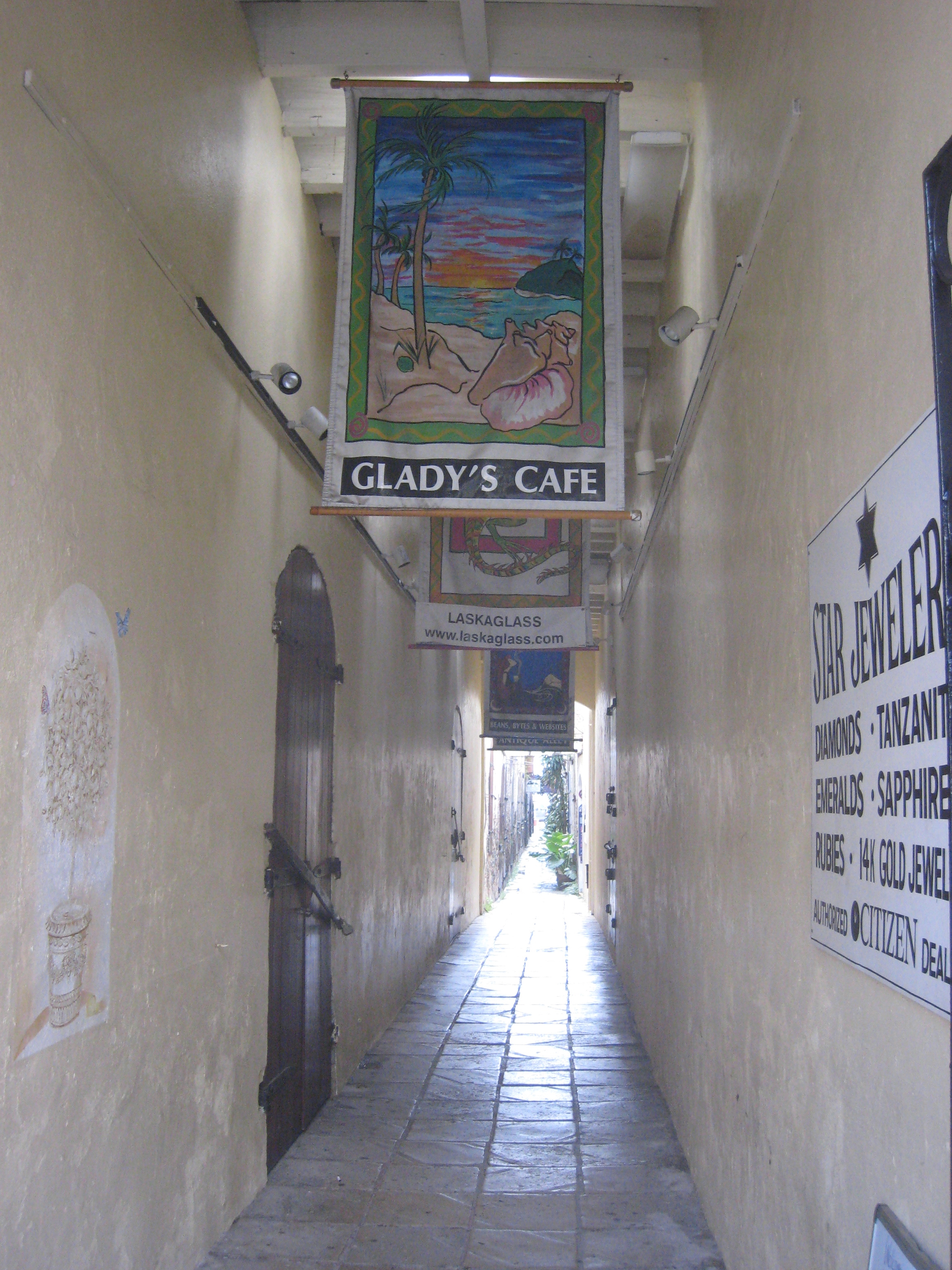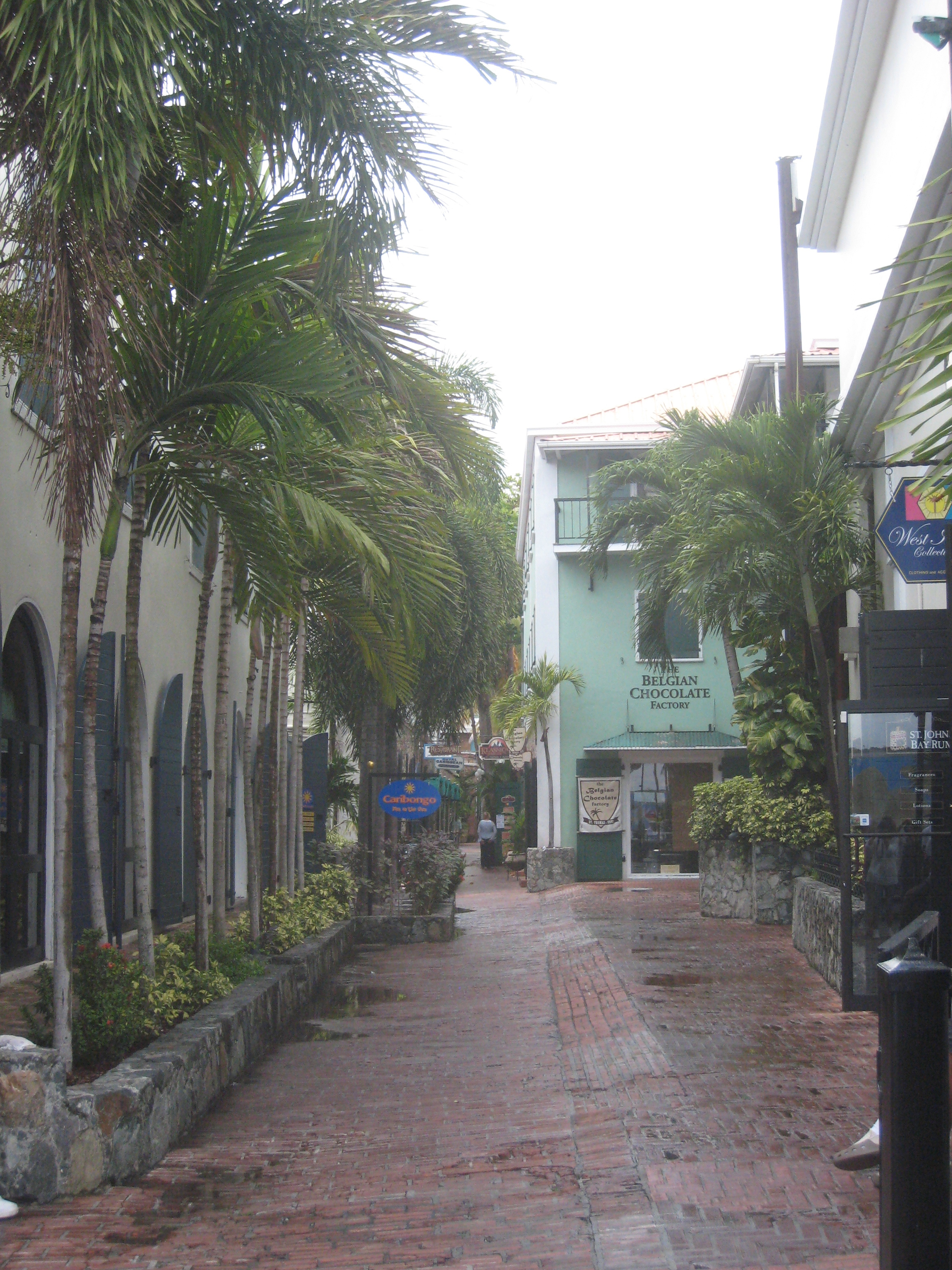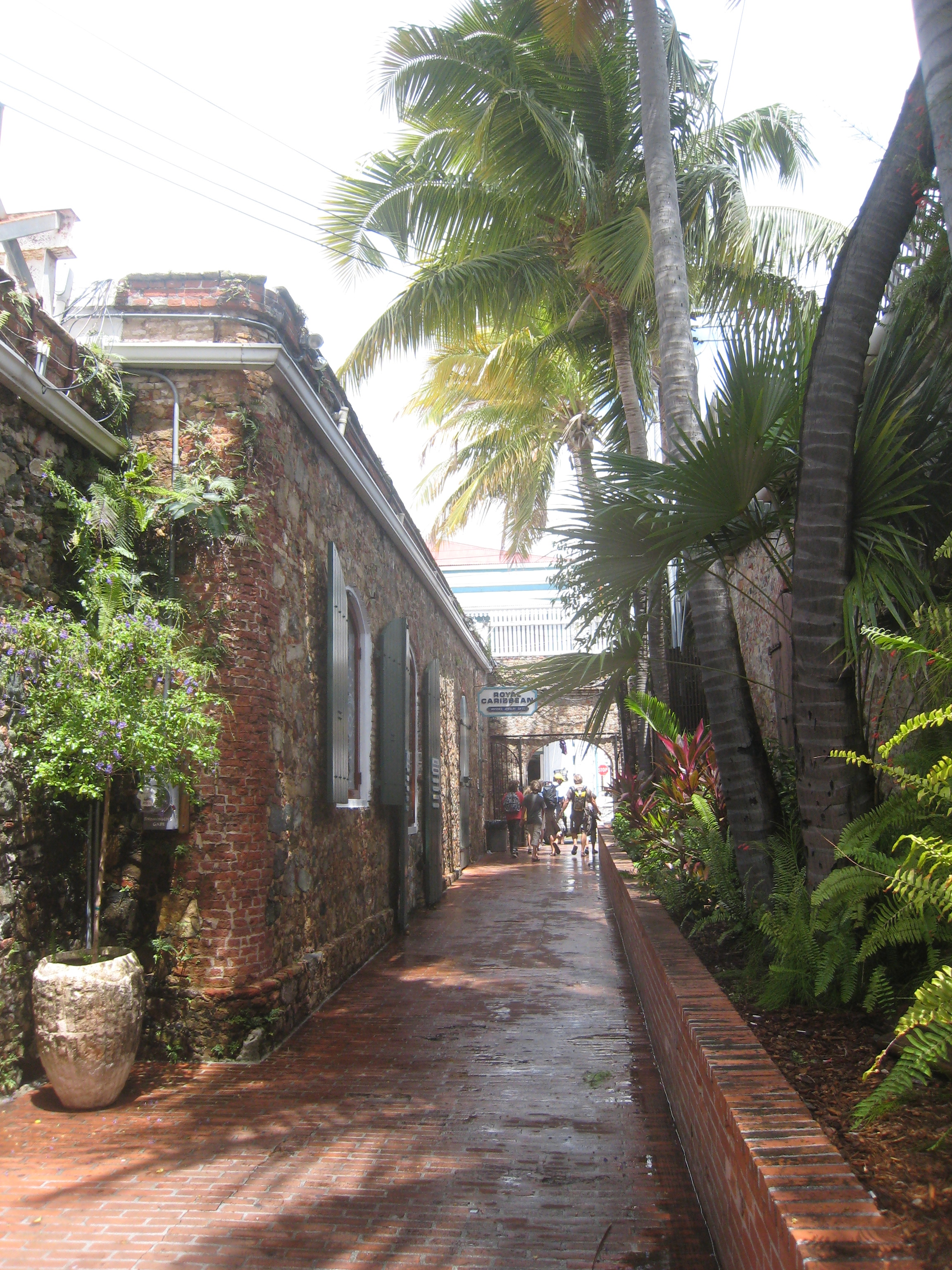 La ville de Charlotte –Amélie est très touristique : d’énormes paquebots déversent chaque jour dans les rues principales des milliers de touristes. Mais elle n’en est pas moins charmante, avec ses nombreux passages traversiers, petits havres de tranquillité à deux pas du tumulte de la rue. La vie semble s’arrêter à l’ombre de ces façades colorées, balcons fleuris, arbustes et petites fontaines…