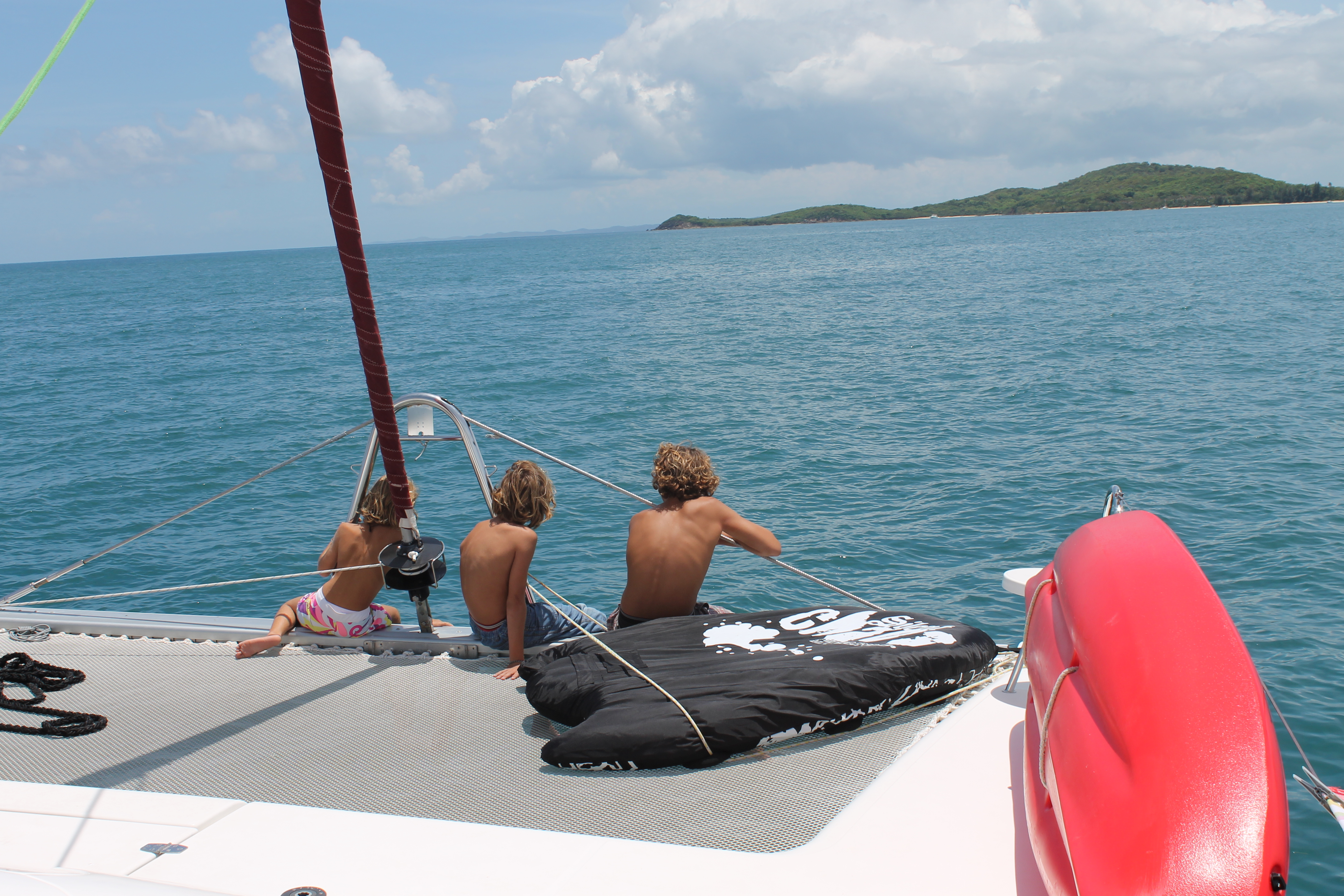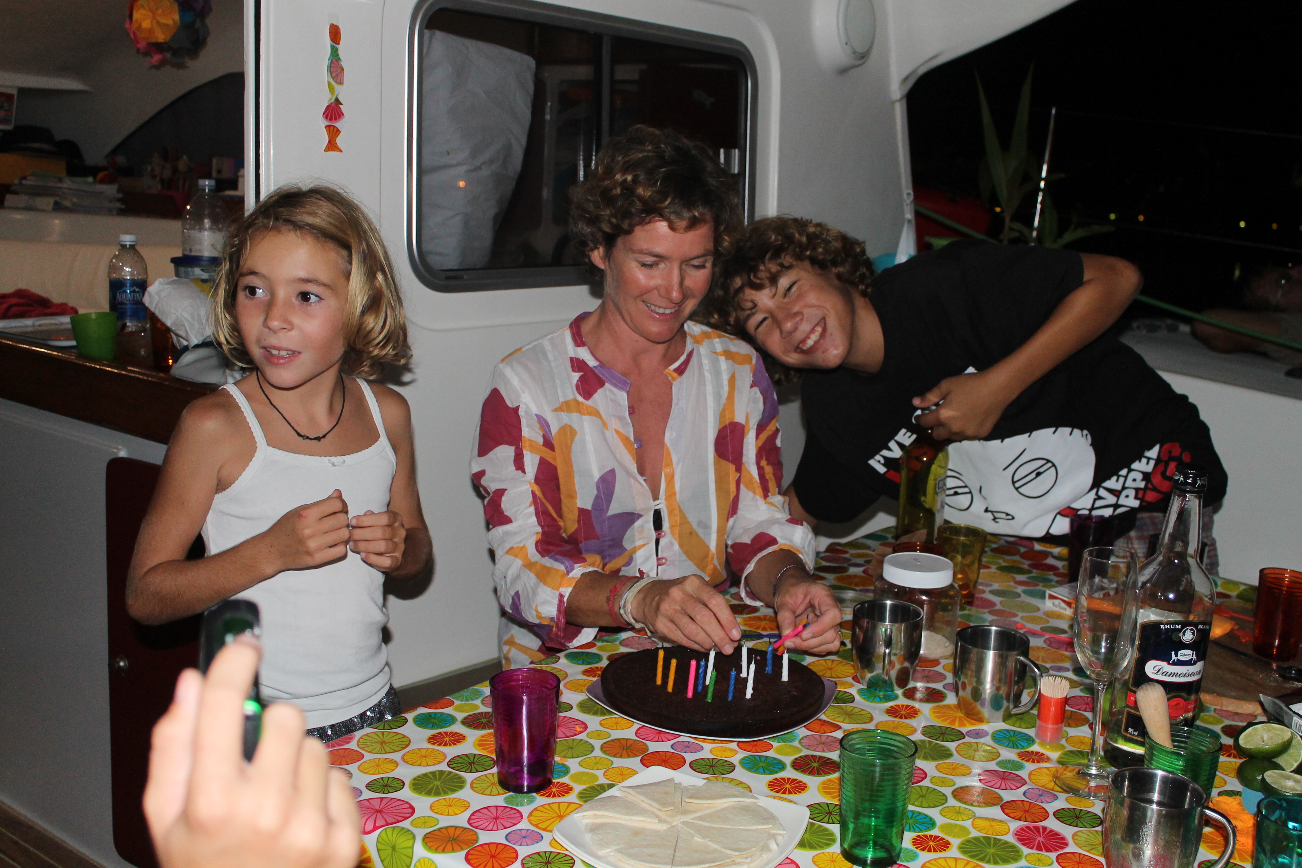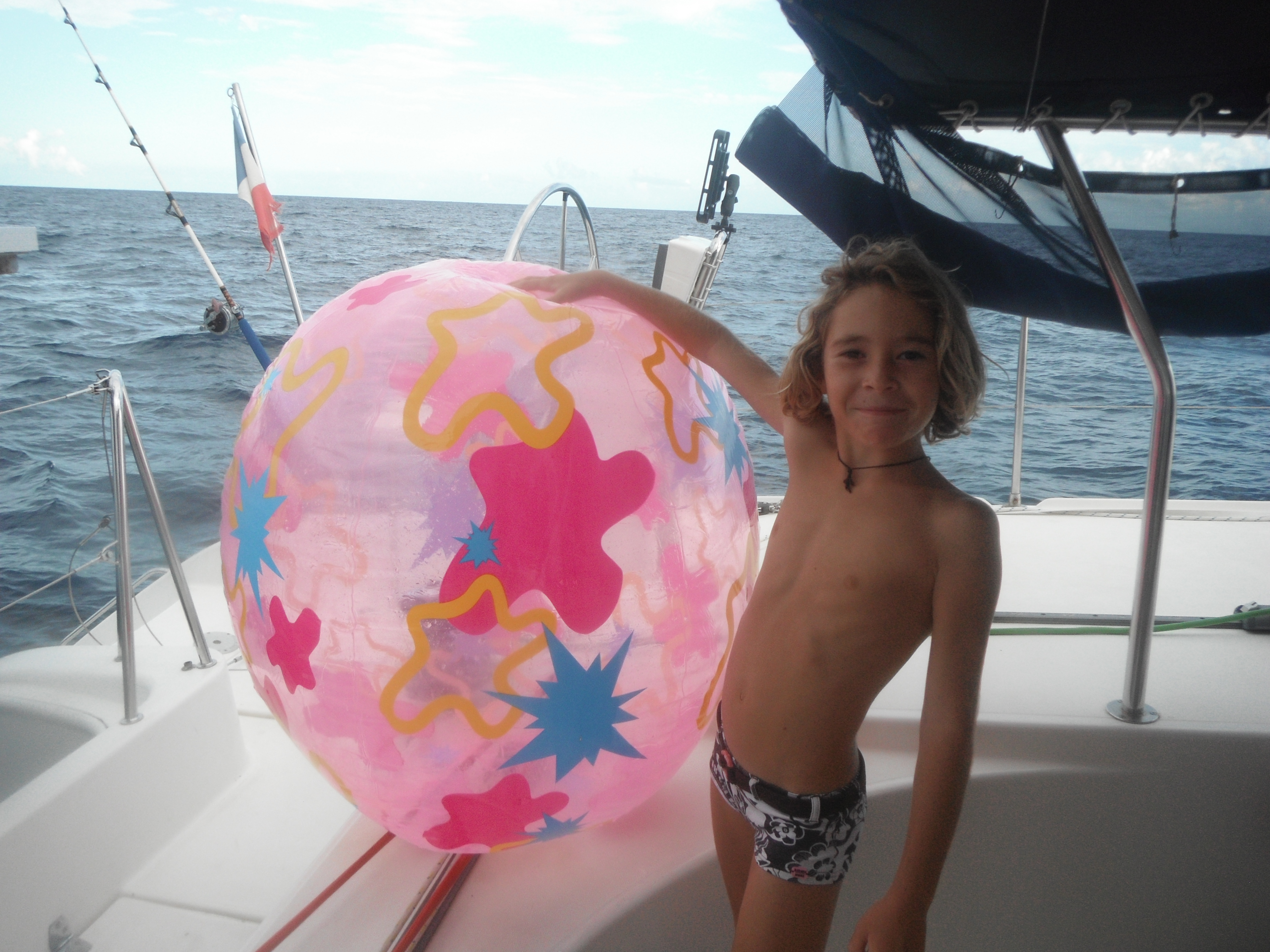 La difficulté d’un voyage en bateau n’est pas toujours là où on s’y attend le plus. Pâques nous a ainsi un peu surpris. Malgré leur âge déjà bien avancé, les enfants n’ont pas l’air de vouloir sacrifier au traditionnel passage des cloches… A force d’entendre Marin et Juju délirer en prévision de cette fête, nous nous motivons finalement pour aider les cloches à trouver le bateau. Ce qui est d’autant plus courageux qu’aux aurores nous sommes encore bien fatigués de la veille… Mais on ne veut surtout pas que la liste de nos méfaits parentaux s’allonge encore. En l’absence de chocolat, l’expérience gourmande est inédite (« sour gums » et autres découvertes étranges) mais fait bien des heureux. D’autant que les grosses cloches ont aussi apporté une bouée à trainer derrière l’annexe, le rêve !