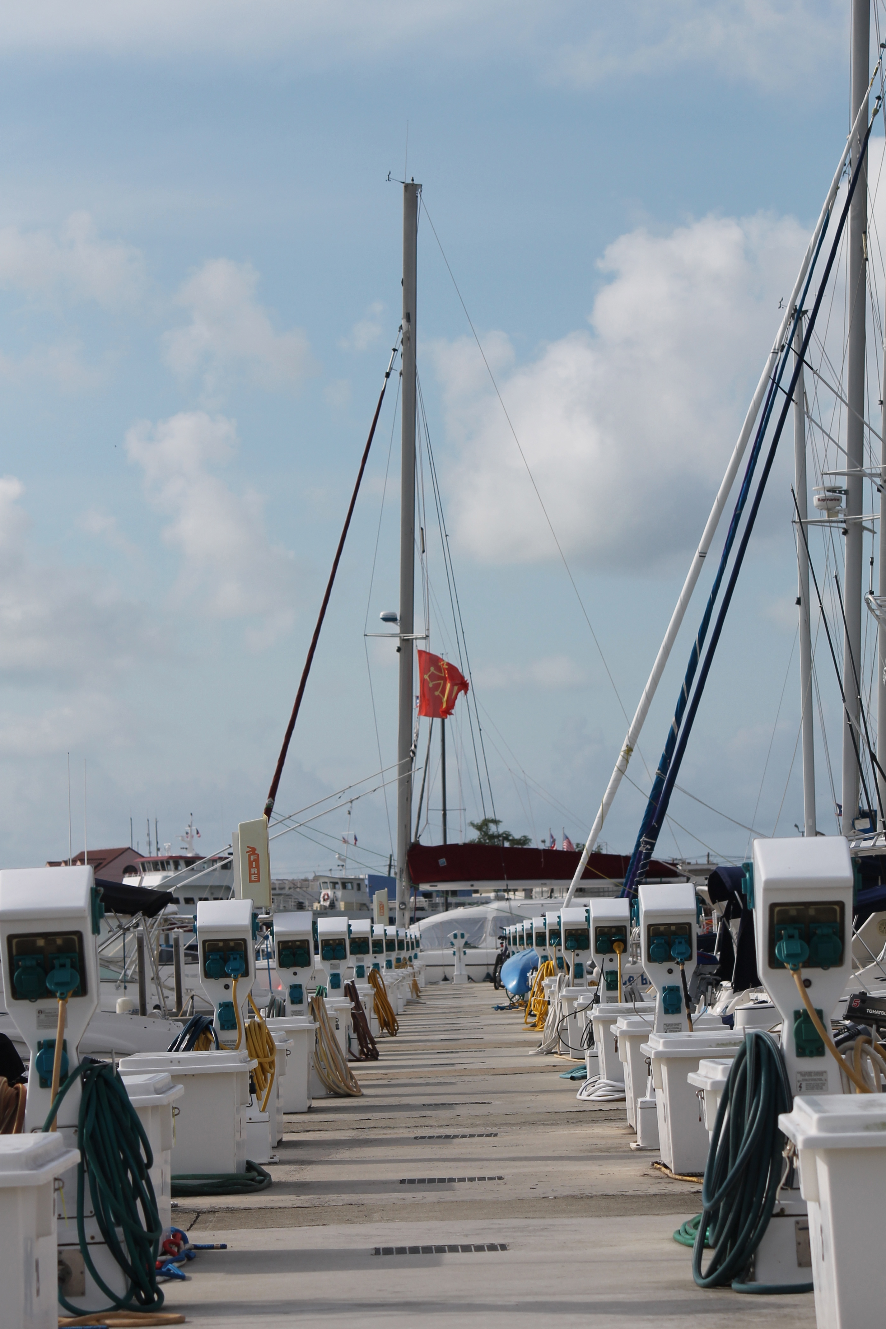 Et c’est ainsi que nous échouons dans la splendide Sunbay Marina : 2 quais, 4 voiliers, des bateaux à moteur de partout, et surtout : rien d’autre !!! Pas le moindre petit bar animé, pas le moindre petit signe de la flamboyante civilisation portoricaine, pas le moindre petit rien. On en reste tout esbaudis… et gravement déprimés… On est vraiment trop fort parfois.