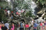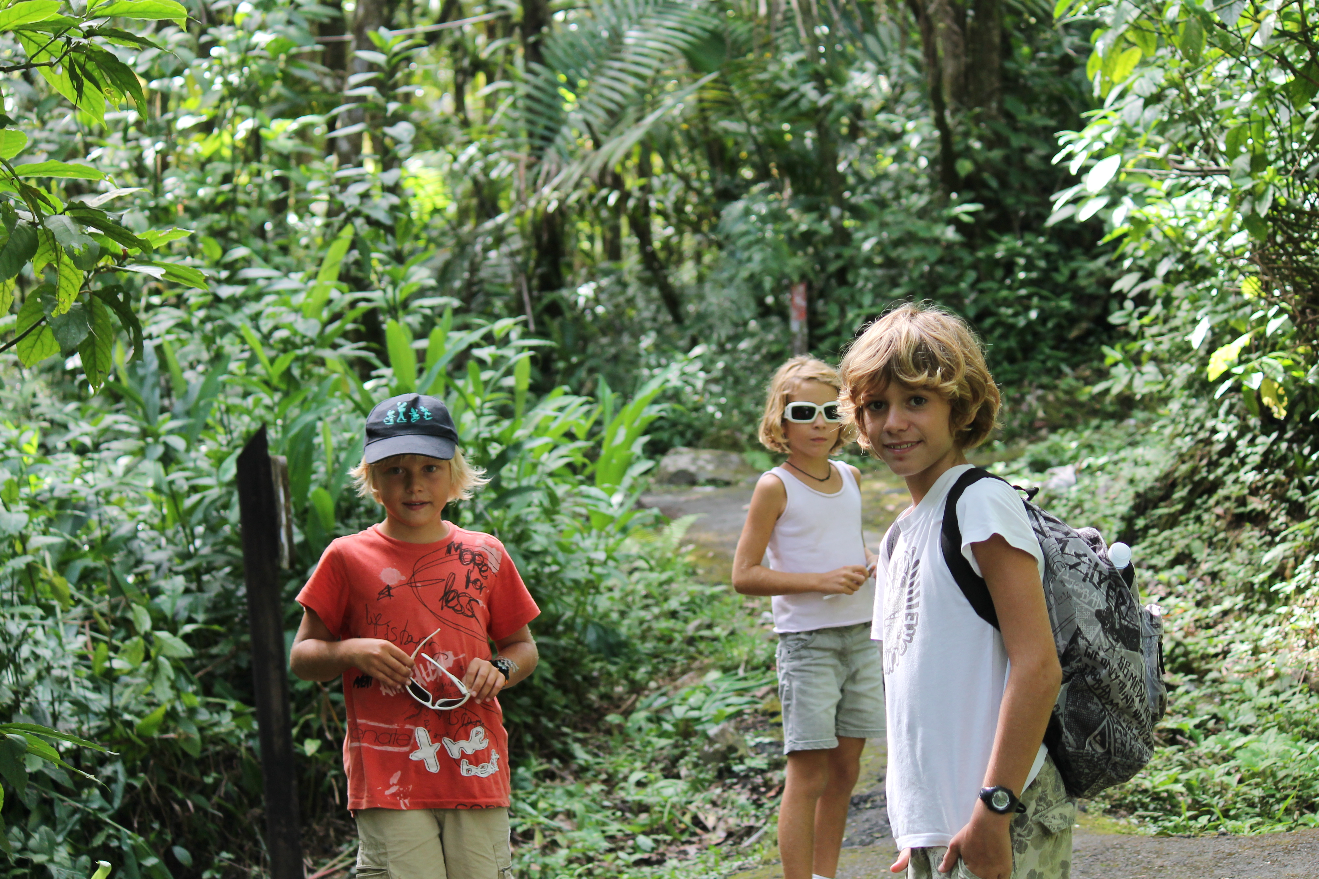 Nous partons à la découverte du parc national d’El Yunque, qui s’étend sur plus de 100 km2 sur l’Est de l’île. Cette forêt tropicale abrite plus de 200 espèces d’arbres, dont 23 sont endémiques de l’île. Premier arrêt à la cascade de la Coca. Des hordes de touristes, mais aussi de Portoricains qui profitent de ce vendredi saint férié, ont pris d’assaut les chutes. On ne peut pas leur jeter la pierre… mais habitués à être plutôt souvent seuls dans nos découvertes des îles, ça nous fait tout bizarre. Les enfants se régalent : autant ils commencent à trouver que toutes les forêts tropicales se ressemblent un peu finalement, et qu’il n’y pas de quoi en faire tout un foin, autant les rivières et les cascades produisent toujours leur petit effet magique.