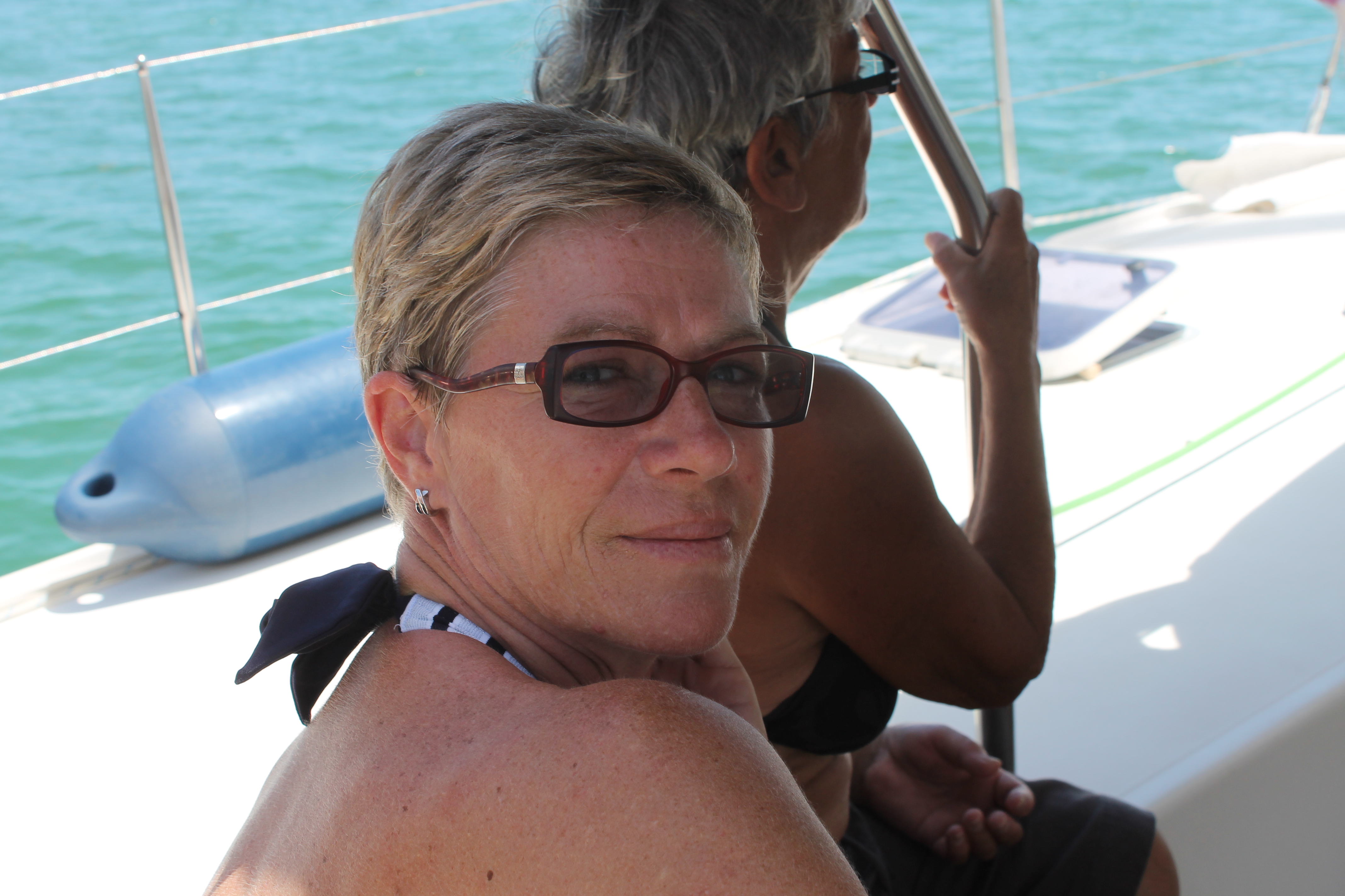 Bubu & Co (avec les enfants petits et motivés) continuent la rando tandis que nous les abandonnons pour rentrer (avec les deux ados fatigués) sur la marina, à temps pour accueillir Anne et Phiphi. Comme prévu ils sont absolument épatés par l’animation des lieux ! Et, cerise sur le gateau, on leur fait des pâtes pour le dîner ! Pauvre Phiphi, c’est difficile parfois de supporter les amis de sa femme…