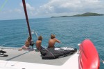 Départ au petit matin de Fish Cay, direction Puerto Rico. Plus précisemment Culebra, où nous nous arrêterons pour les formalités d’entrée et où nous passerons la nuit avant de rejoindre San Juan. Ce qui est sans compter l’esprit très volatile de nos capitaines … On devrait leur supprimer la VHF pendant les nav : ça papote, ça papote, et ça change de plan sans arrêt ! Finalement, San Juan n’est peut être pas l’escale la plus tranquille qui soit et il semblerait que Fajardo, proche de la forêt d’El Yunque, soit plus adapté à notre programme. Anne et Phiphi (qui me font la « surprise » de débarquer pour mon anniv) étant prêt à nous rejoindre à l’autre bout du monde (et Fajardo en étant un), nous passons notre chemin devant Culebra et poursuivons notre route directement jusqu’à Puerto Rico.