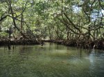 Le lendemain matin nous allons de bonne heure, et de bonne humeur, explorer les environs en dinghy. Nous approchons à la rame des mogottes pour épier les centaines d’oiseaux qui y nichent. C’est fabuleux. A terre, les park rangers attirent notre attention sur le passage d’un banc de dauphins au large. La nature est partout sauvage et inextricable.