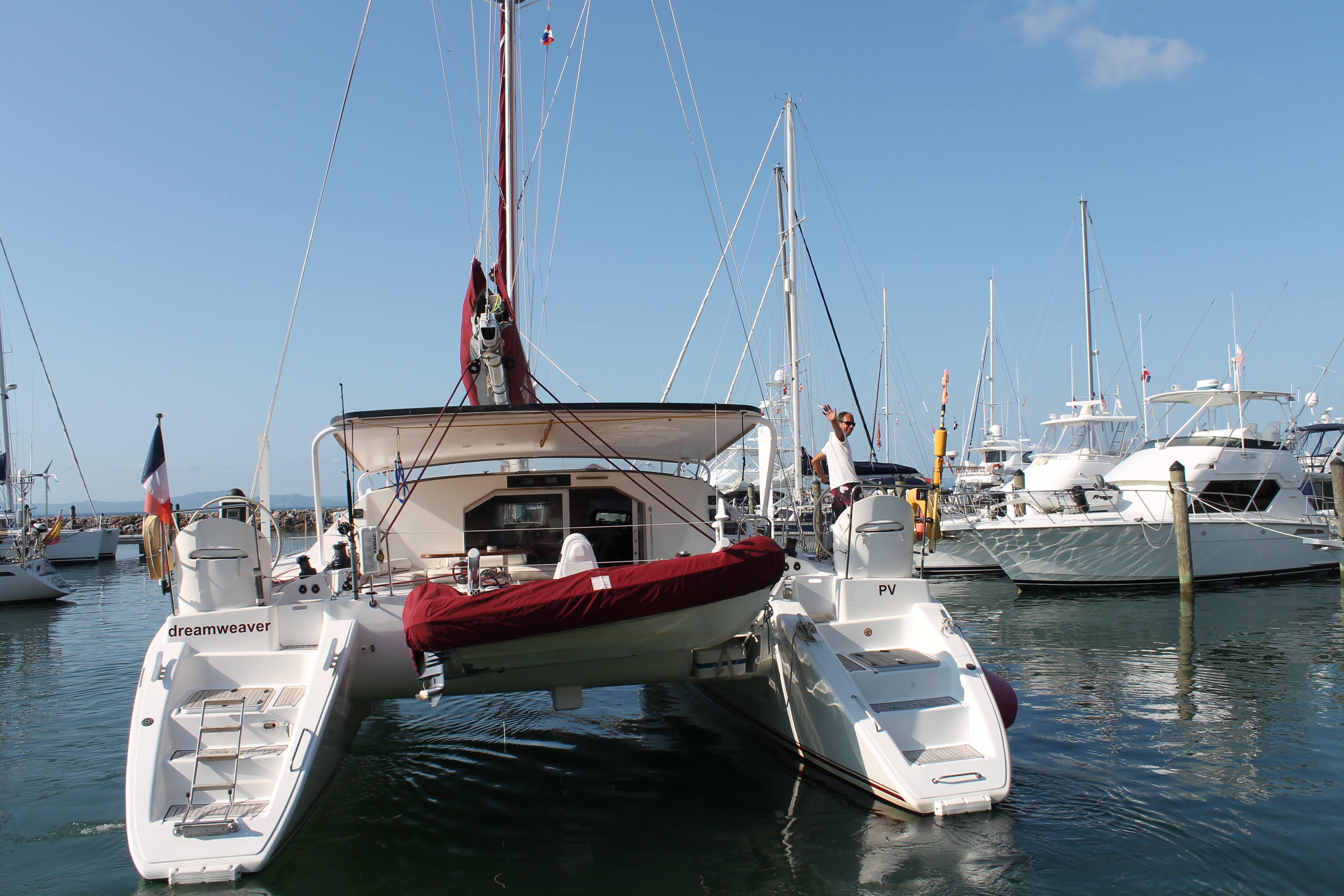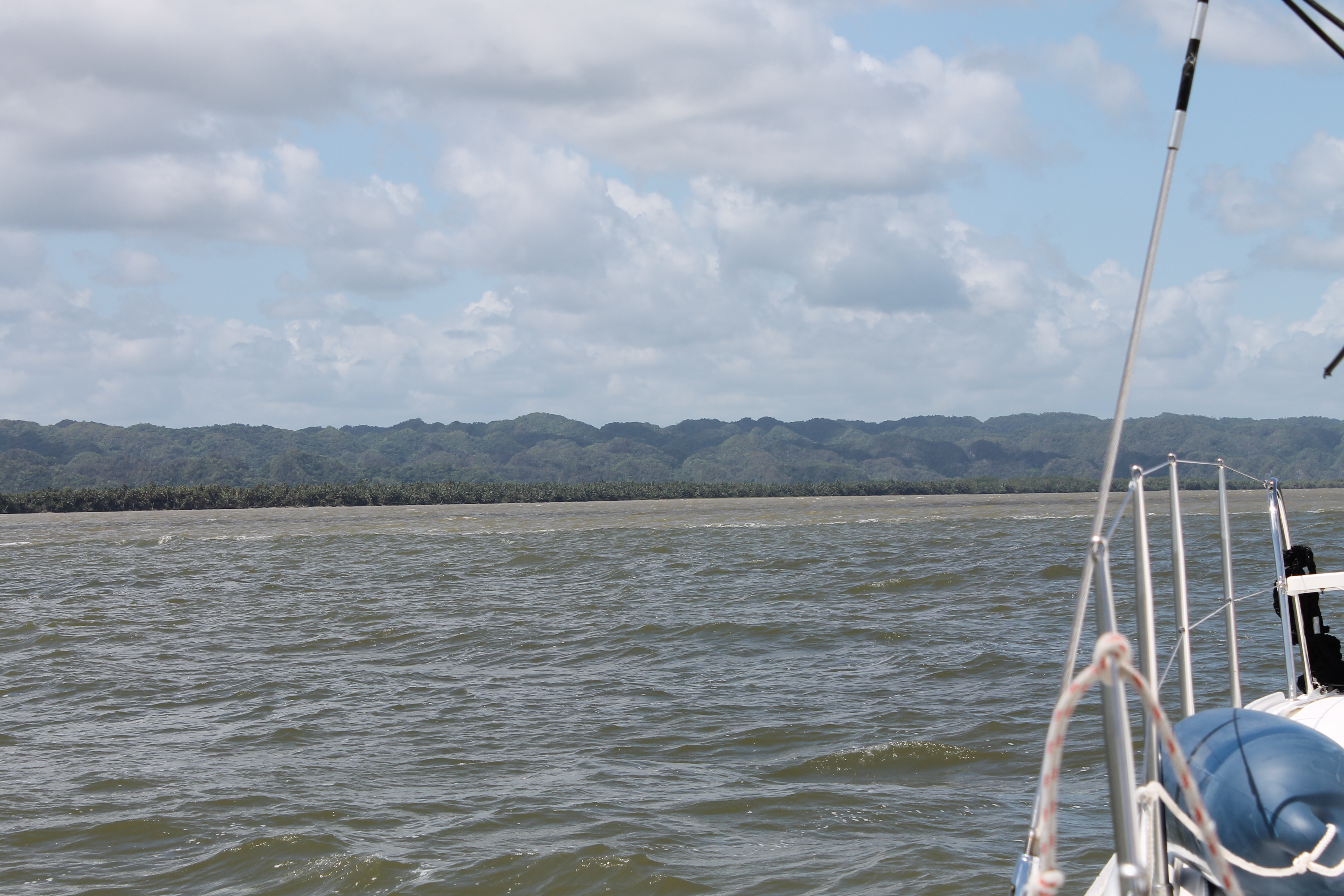 Après une longue ballade en forêt à chercher (vainement) les pétroglyphes précolombiens, ramasser des fèves de cacao et autres fruits sauvages, écraser un nombre hallucinant de moustiques, Vincent nous invite à partager un excellent confit de canard sur Dreamweaver (avec les petites patates sautées de Momo… miam !). On avait oublié que ça existait… En repartant sur nos bateaux, le sillage de nos annexes s’illumine dans la nuit, les hélices agitant le plancton bioluminescent à la surface de l’eau. On a souvent pu observer le phénomène en navigation, rien que dans les remous laissés par les coques, mais jamais avec une telle intensité ! C’est tellement beau ! Petite pensée pour Marie et Steph, qui auraient tellement aimé voir la baie bioluminescente de Fajardo, à Puerto-Rico.