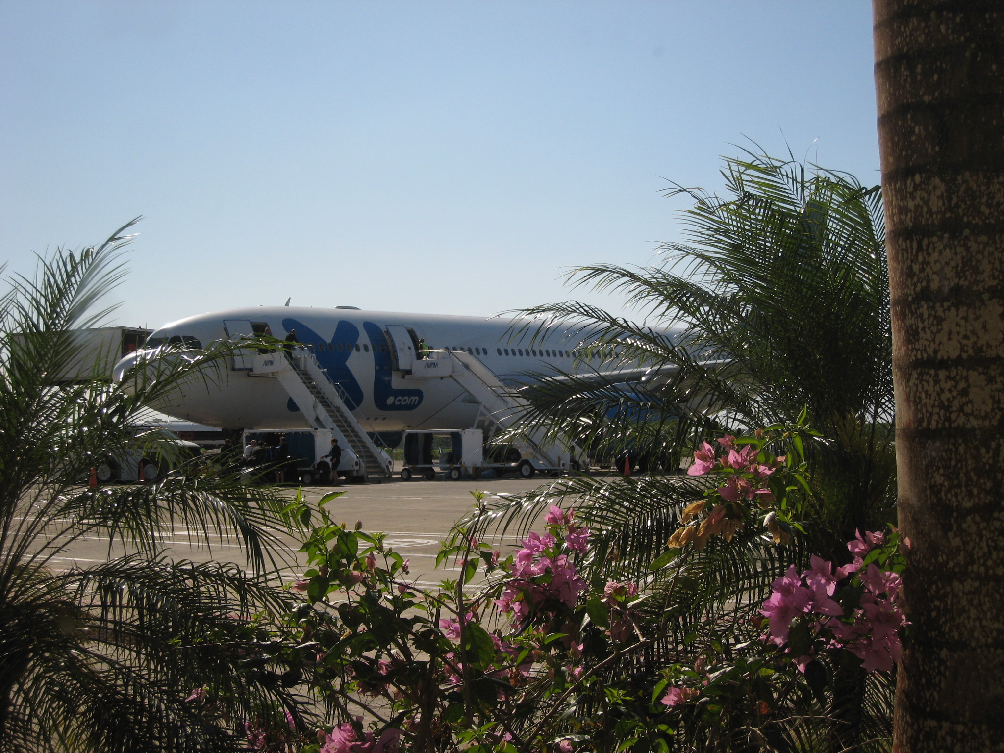 Nous laissons les enfants au reste de la troupe pour rentrer sur Puerto Bahia dans la matinée : mamie reprend l’avion aujourd’hui 19 avril, depuis l’aéroport d’El Catey, à une heure de route environ de Samana. On l’aurait bien gardée encore un peu sur Zanzibar, mais nous allons bientôt partir pour les Turks and Caicos et le rapatriement risquerait alors d’être un peu plus compliqué… C’est tristounet de la laisser repartir toute seule avec son bras en écharpe. D’autant qu’elle fait sonner tous les portiques au passage de la sécurité et qu’on la voit se faire embarquer dans un bureau pour une fouille en règle ! Pendant que nous piétinons et nous inquiétons, elle se débrouille comme une grande, en anglais, jusqu’à opposer un refus catégorique aux agents qui veulent lui ôter son pansement pour vérifier qu’elle ne cache pas une arme atomique sous sa cicatrice… Non mais des fois !