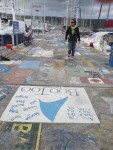 Nous faisons nos premiers pas à terre en foulant les quais recouverts des « good wind paintings », traditionnels dessins réalisés par tous les bateaux de passage pour s’attirer les faveurs d’Eole et éloigner le mauvais sort. Les enfants ont déjà en tête ce qu’ils veulent peindre et les discussions vont bon train.