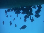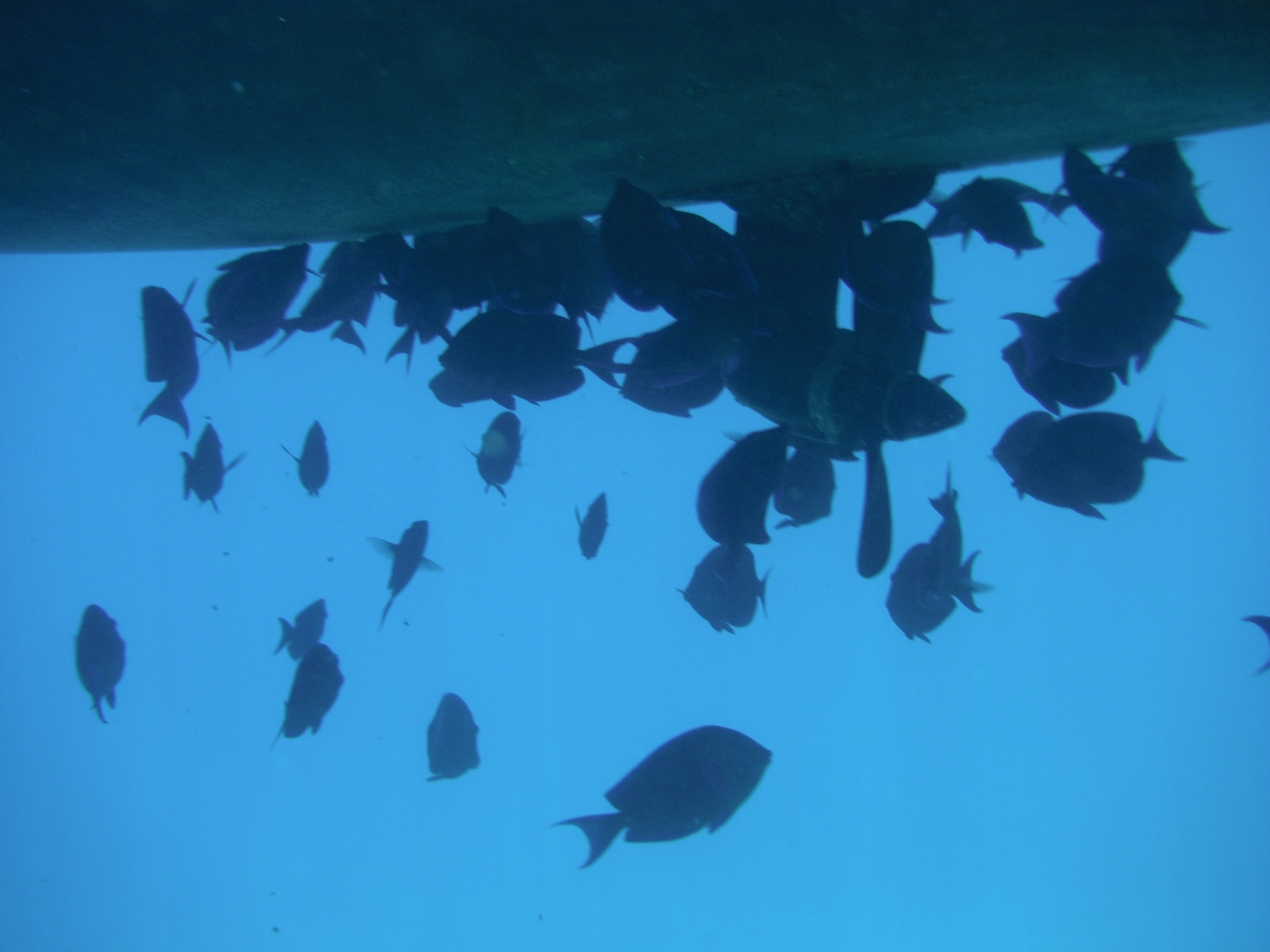 C’est le désert aussi sous l’eau : 3 pauvres poissons se battent en duel, mais on s’en moque, c’est tellement beau dehors. On se baigne, on se promène sur la plage, on traine les enfants dans l’eau avec l’annexe, on bouquine, on ne fait rien (pas de wifi, pas d’ordi !), et c’est chouette.