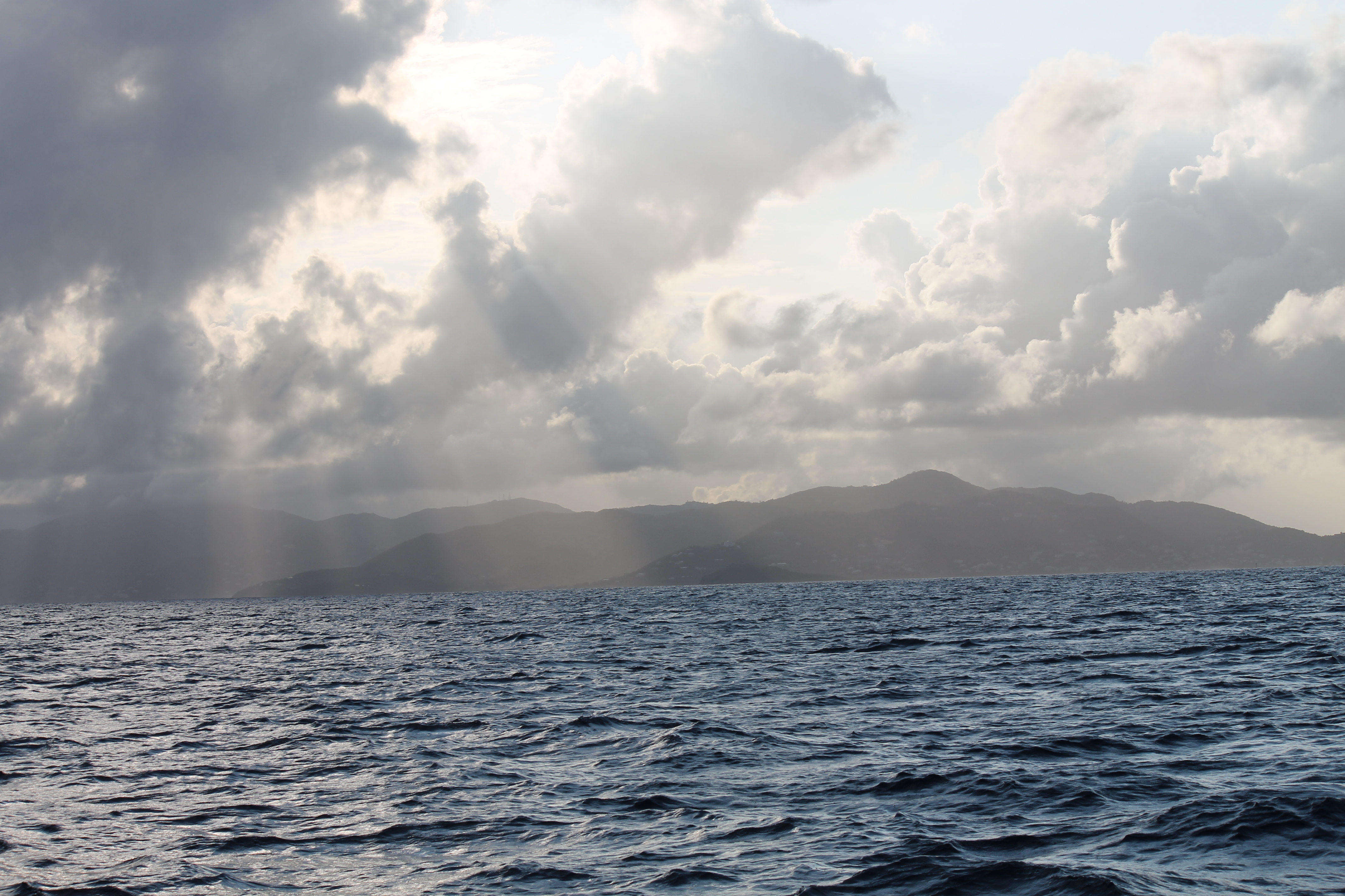 1er avril : poissons d’avril partout sur le bateau et dernière escale aux British Virgin Island. Et quelle escale ! A Treasure Point, en découvrant les Caves (trois grottes envahies par la mer), on veut croire encore aux légendes, aux pirates et aux trésors cachés qui ont fait l’histoire de cette île. Elle inspira Robert Stevenson pour son livre «L’ Ile au trésor », à l’ambiance plutôt effrayante. Mais dans le soleil éclatant qui frappe les roches rouges du rivage, l’atmosphère est quand même bien moins inquiétante ! On peut cependant facilement imaginer pire… L’endroit est magique. On prend une bouée à quelques mètres à peine de l’entrée des grottes, le temps d’aller explorer les tombants foisonnant de poissons d’un coup de snorkling. Puis nous déménageons à Prevateer Bay, juste au Sud, pour y passer la nuit (et même deux nuits finalement, tellement c’est chouette et tranquille).