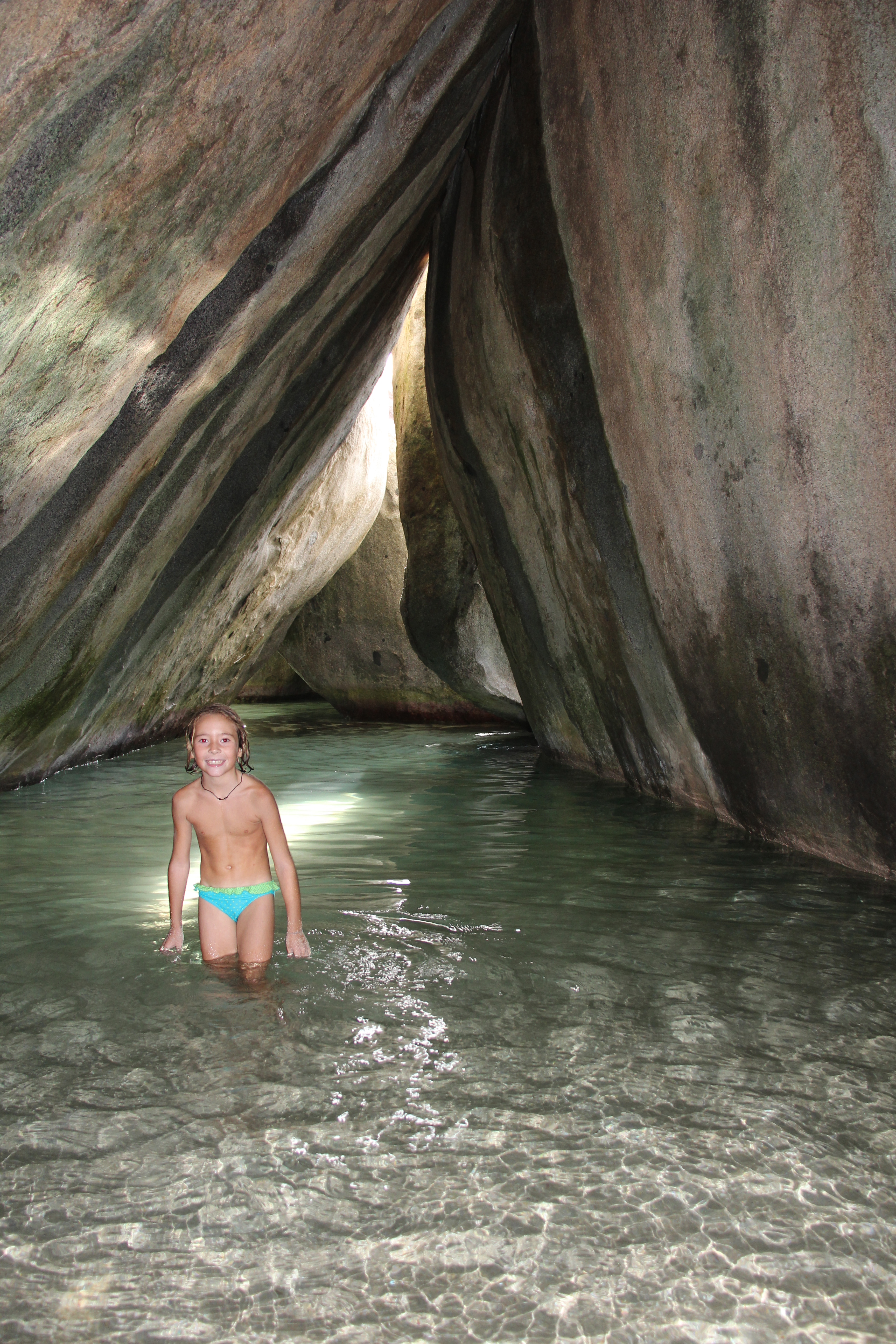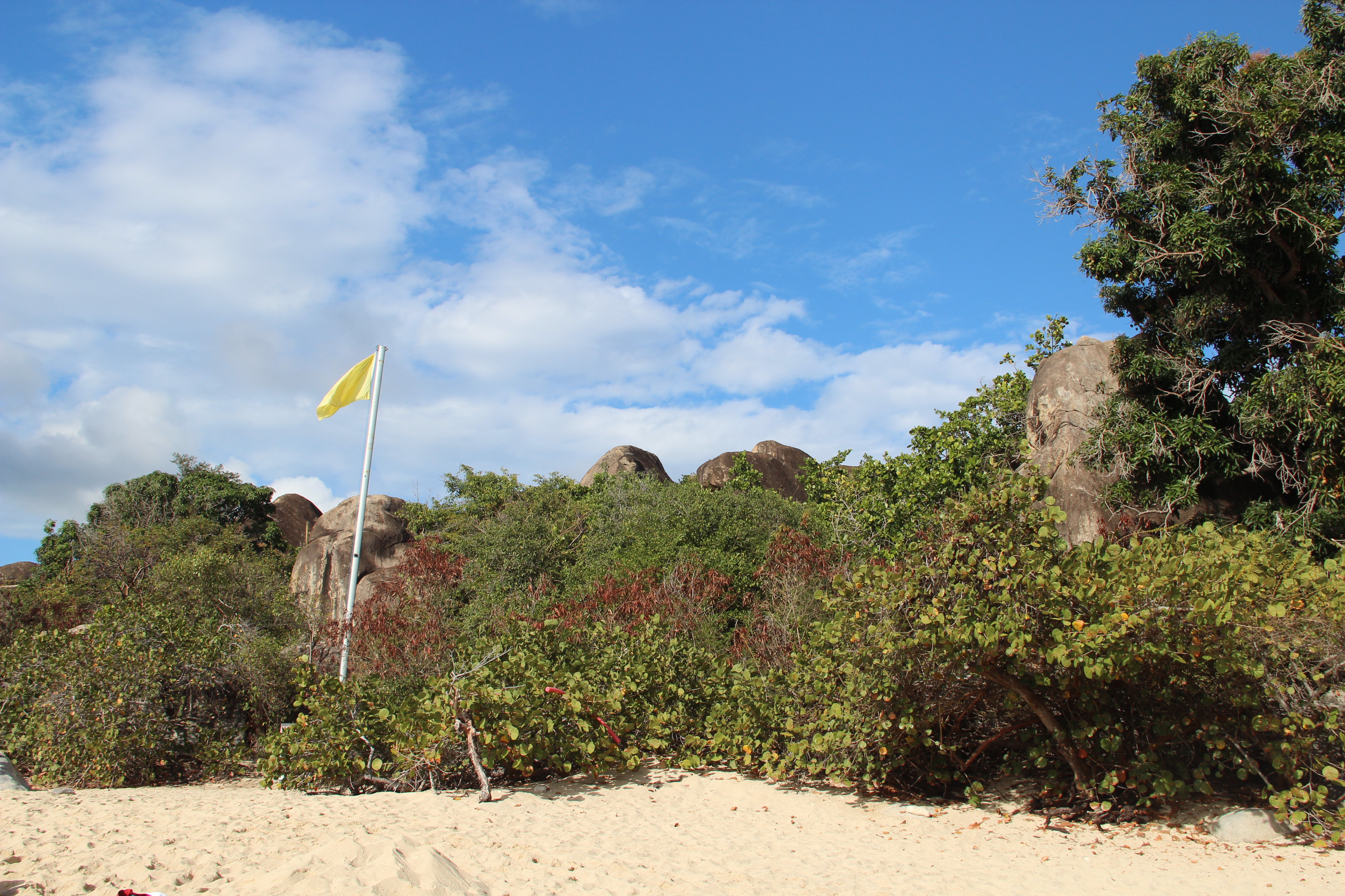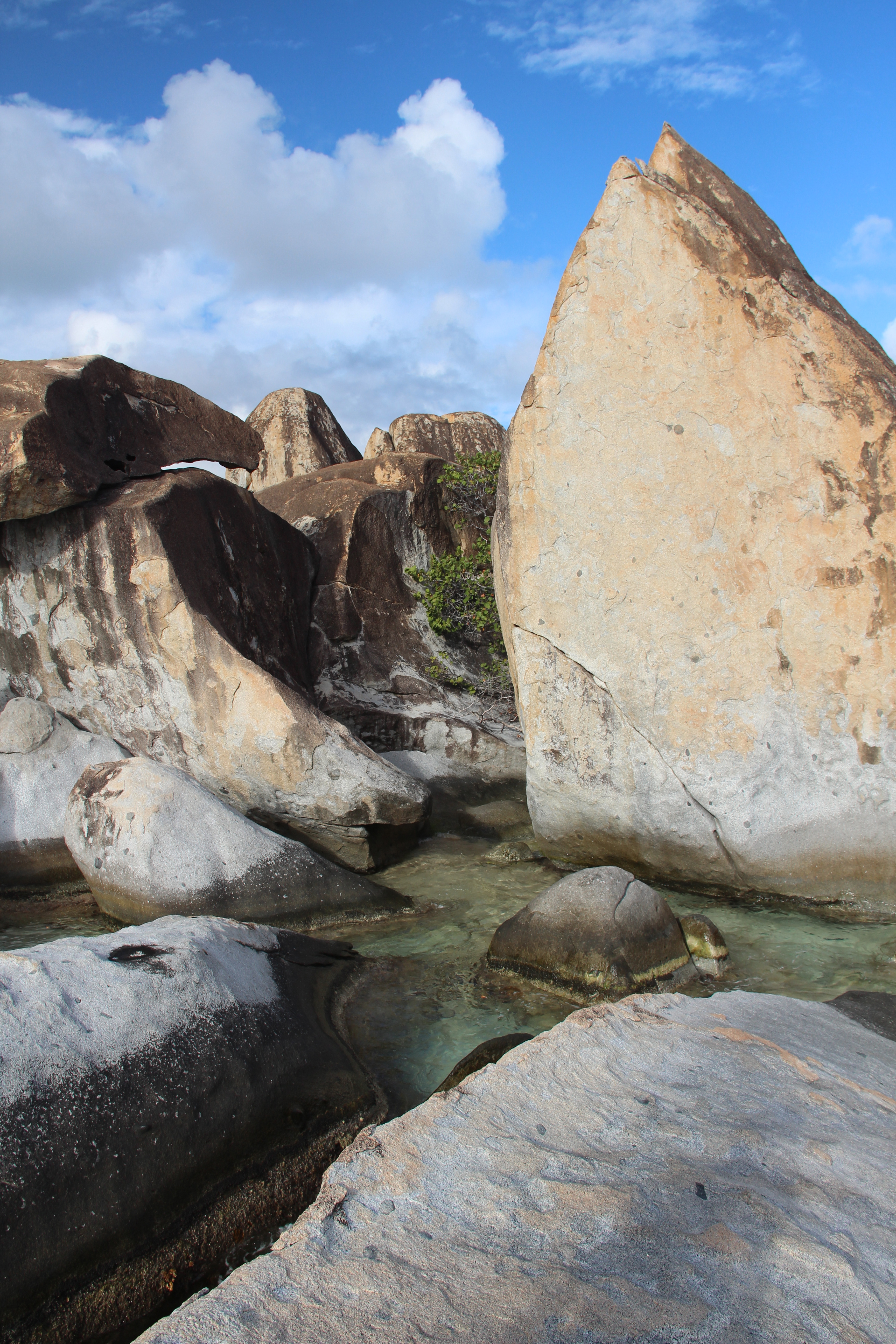 Les Baths sont un labyrinthe de baignoires naturelles en partie envahies par la mer, formées dans un amoncellement de blocs de granit d’origine volcanique, disséminés le long de la plage. Le spectacle est tout à fait étonnant : des petites piscines aux eaux cristallines se cachent entre les rochers ou dans les grottes creusées par le vent, les marées ou les tempêtes. Les dinghy n’étant pas autorisés à accoster, on nage jusqu’à la plage puis on chemine lentement dans le dédale de roche jusqu’à Devil’s Bay. Jolie promenade aquatico-pédestre. Les enfants se régalent de ces rochers à escalader, des grandes flaques d’eau claire où se trempouiller, des nombreuses cachettes où jouer aux pirates.