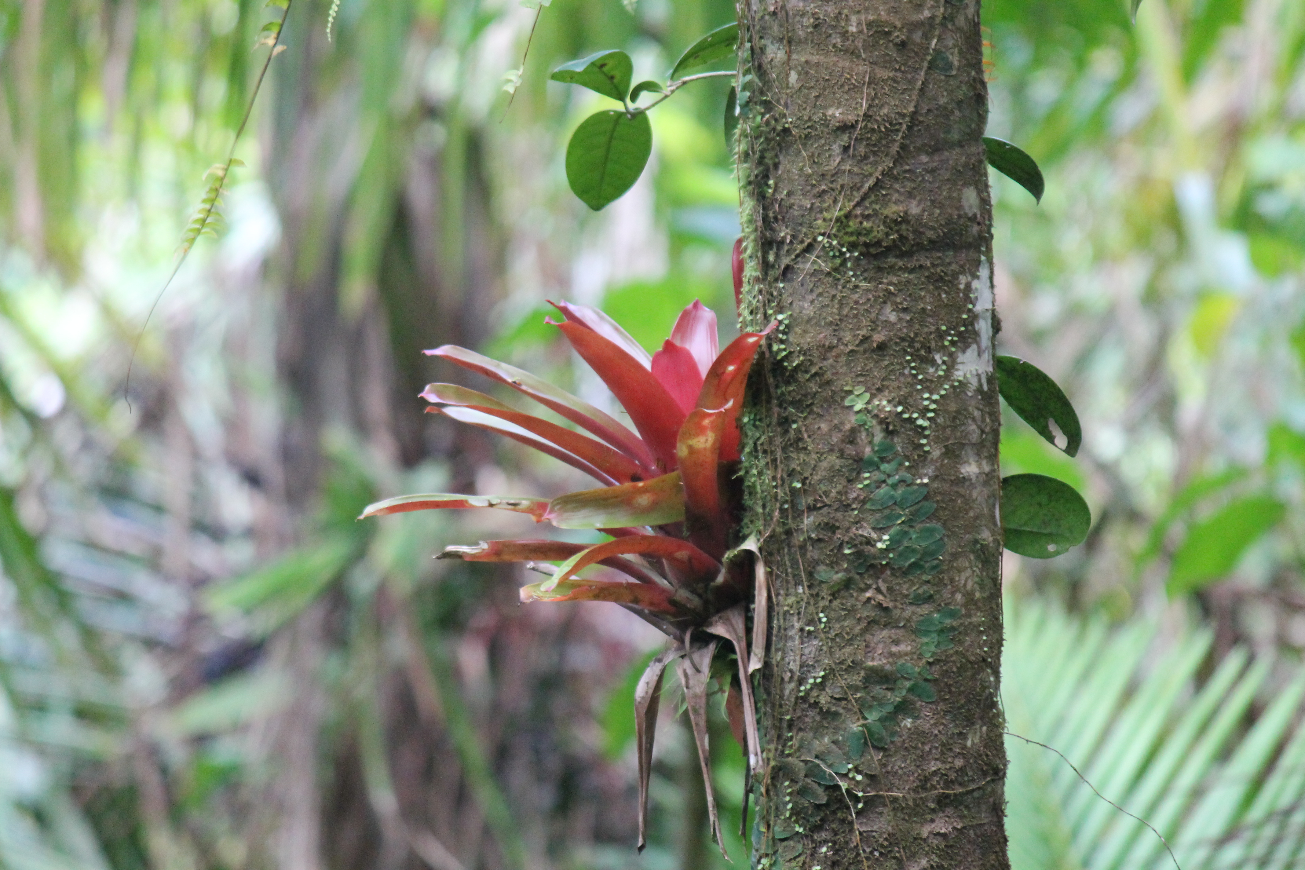Puis petite rando à l’ombre des sentiers. Nous n’y croisons pas grand monde et retrouvons le calme et la sérénité de nos petites promenades habituelles, tous nos sens en éveil. On écoute le chant des oiseaux et les traquons de nos appareils photo avec plus ou moins de réussite. Malgré nos efforts, nous ne débusquons pas la « coqui », petite grenouille endémique qui peuple la forêt. Tant pis… On ramasse des graines d’on ne sait pas trop quoi, on fera des essais de plantation une fois rentrés à Cournon !